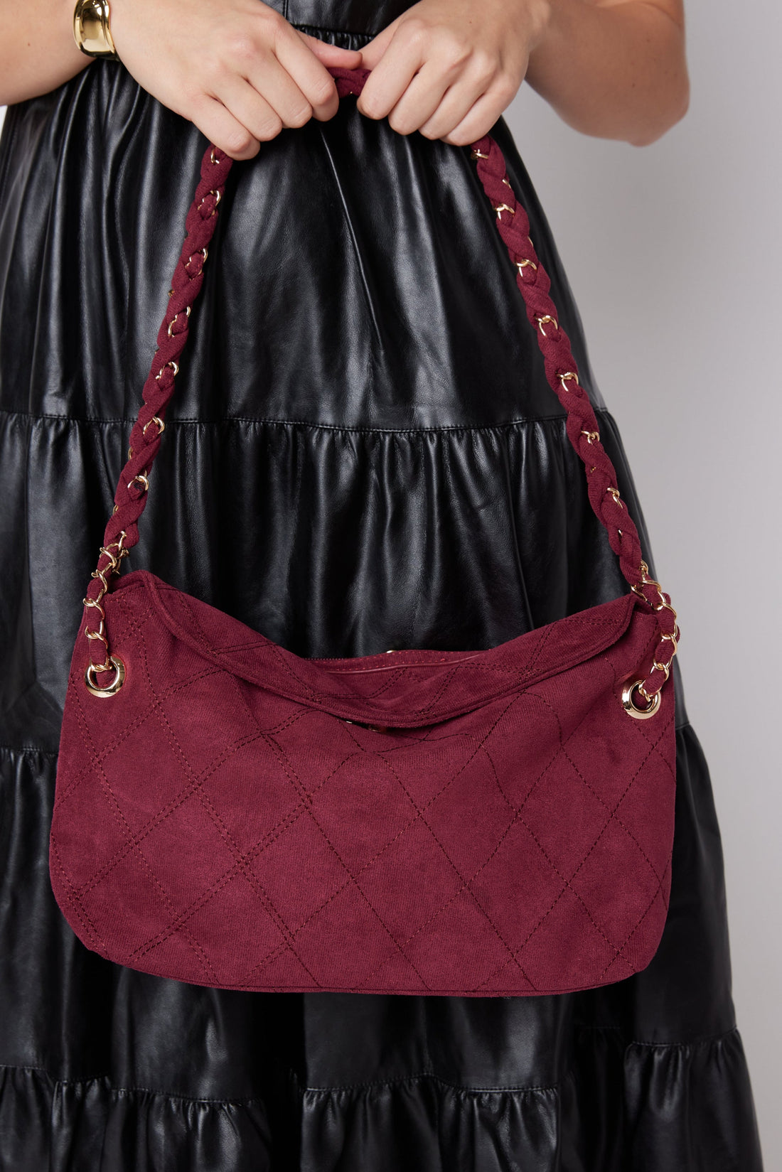 SALE - Dominique Faux Suede Quilted Shoulder Bag