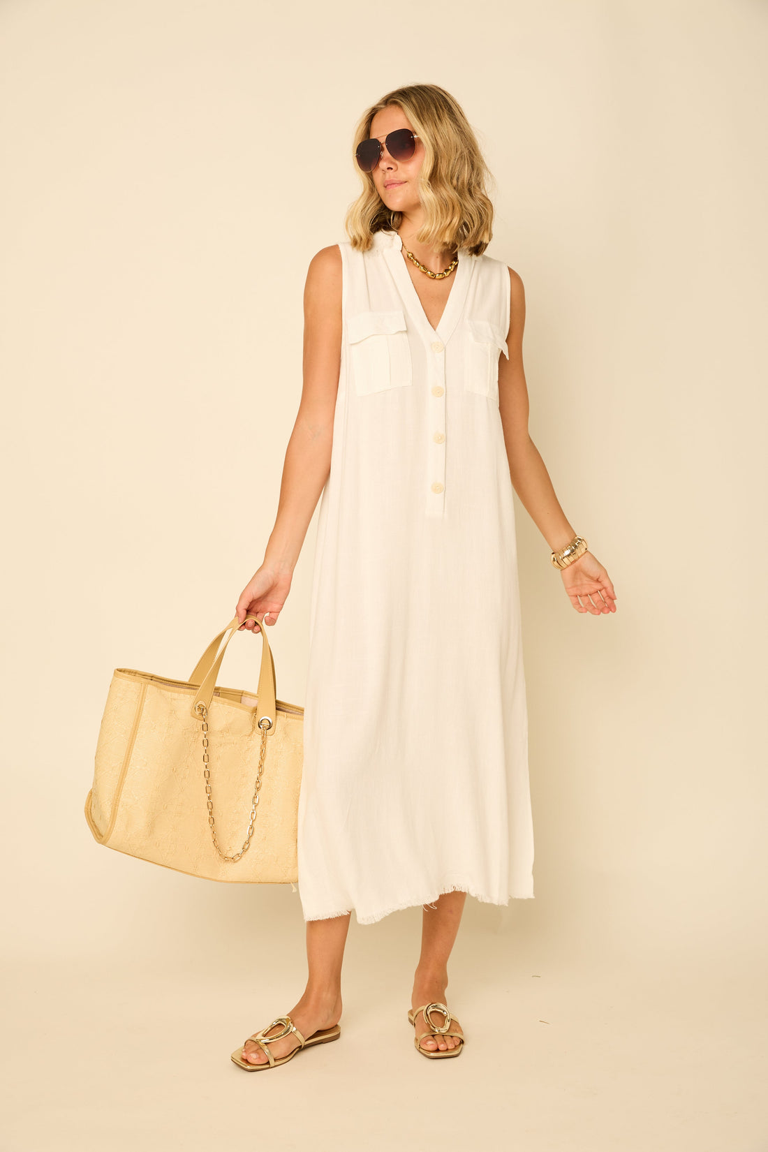 Shelly Mixed Media Stripe Tiered Midi Dress