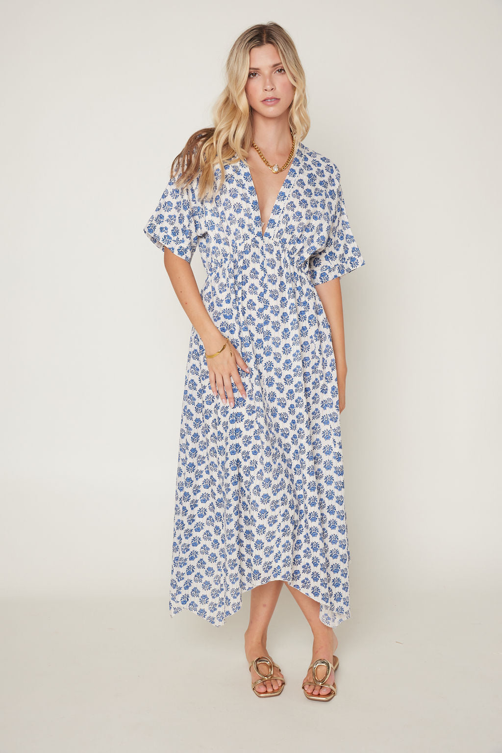 Ally Tropical Print Collared Button Down Midi Dress with Belt