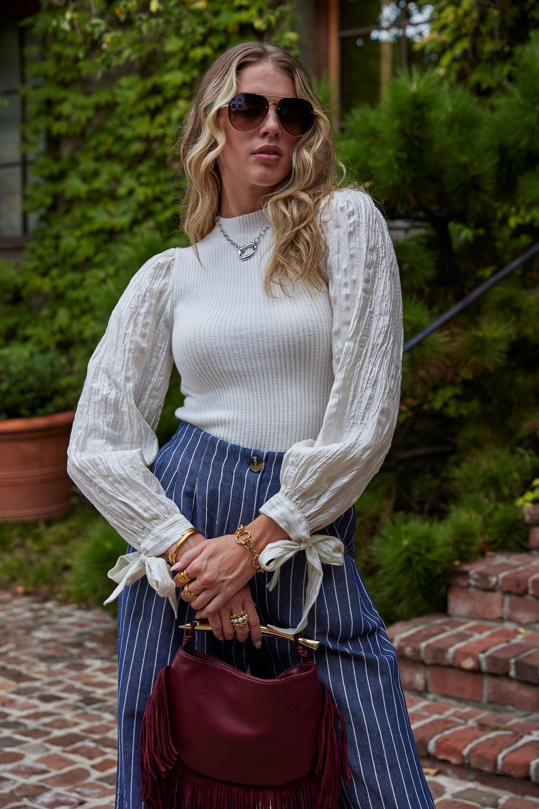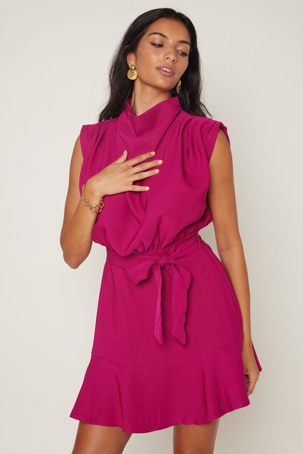 Christian Cowl Neck Elbow Sleeve Satin Top