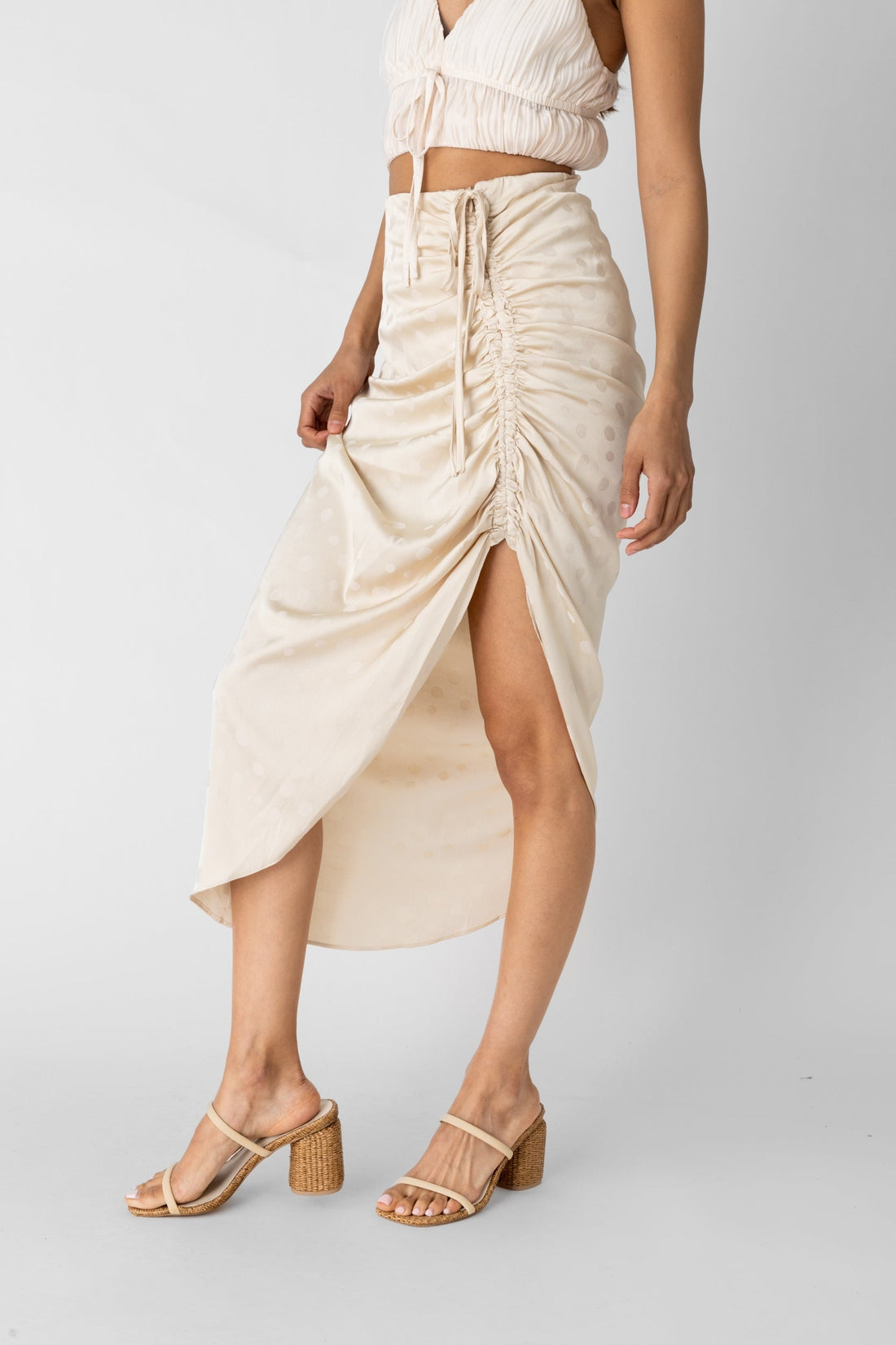 Gael Ruched Polka Dot Skirt