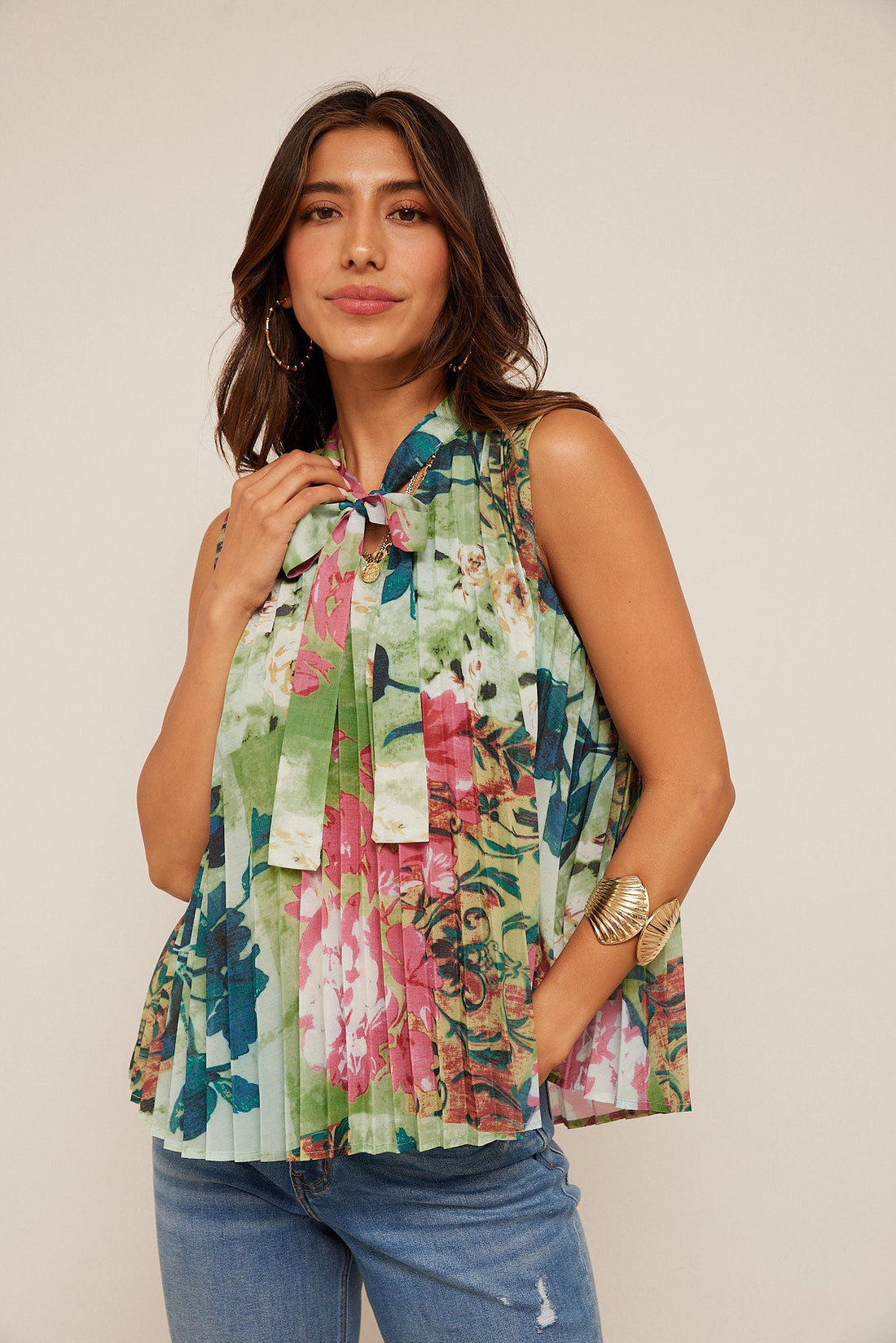 Ray Smock and Ruffle Detail Metallic Woven Top
