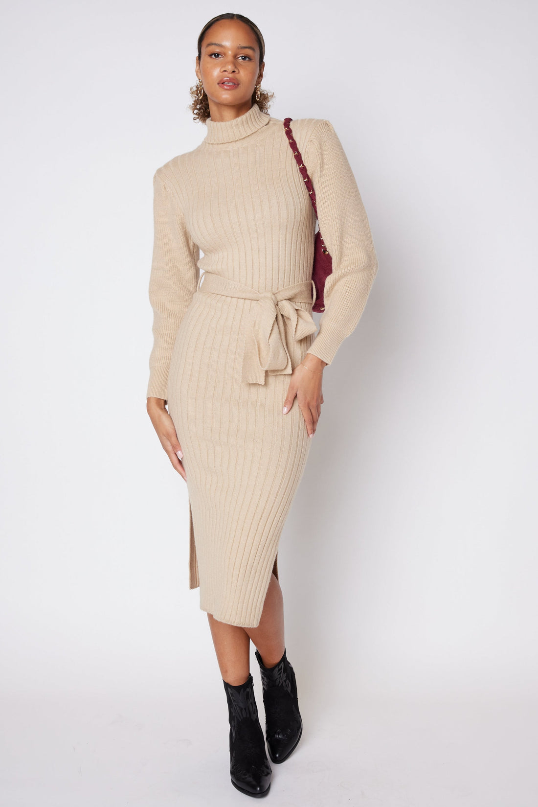 SALE - James Turtleneck Tie Waist Sweater Dress