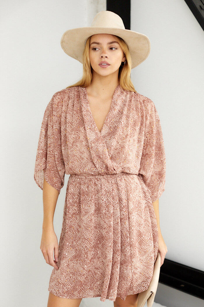 Sunny days pair perfectly with this dress! Lightweight fabric shapes this dreamy dress that has a deep V-neckline, short sleeves, and a relaxed bodice. Elasticized waist tops a flowy skirt. Pair with a sunhat and chic accessories for a weekend lunch look.
