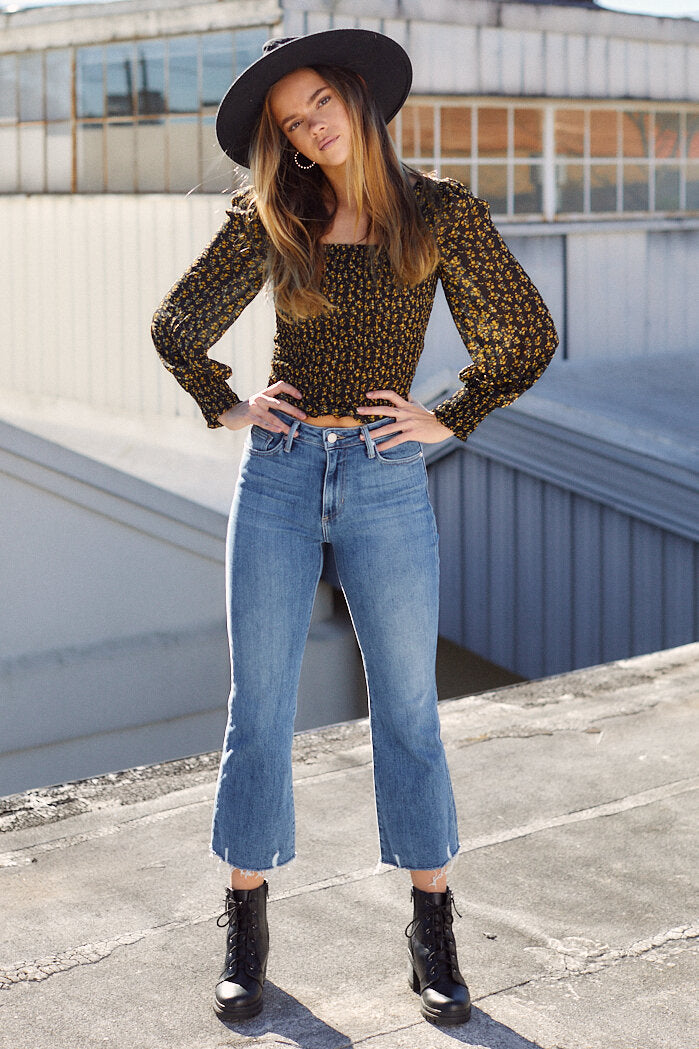 Cropped and smocked, the Alexi Floral Ruched Top is the perfect night out top. Crafted with a puffed sleeve and an all-over floral print, this cropped top pairs perfectly with a high waisted denim for night-out styling.