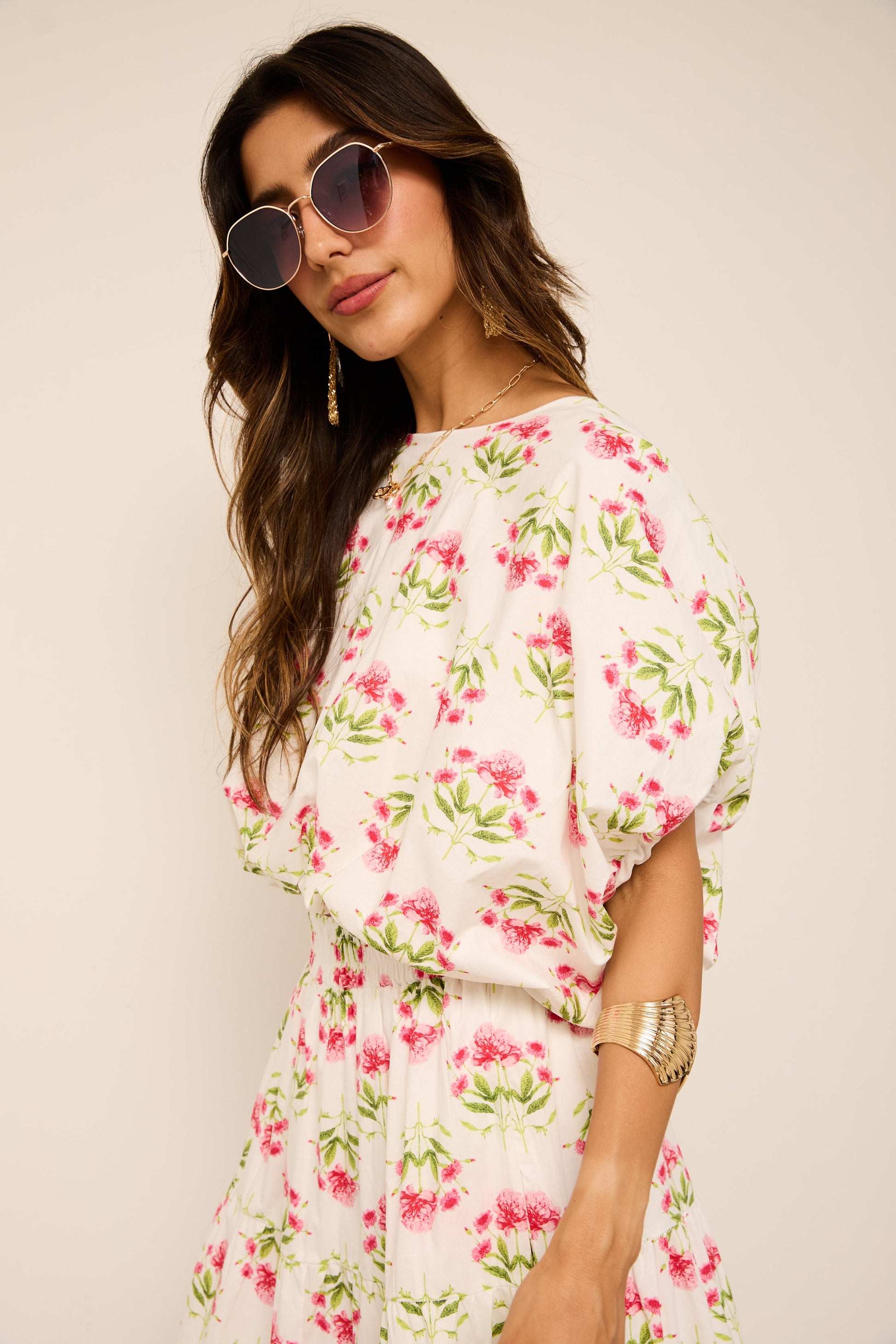 Angie Floral Bubble Hem Top