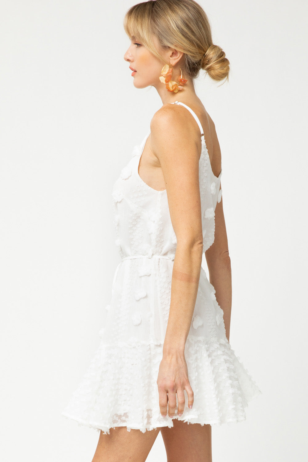 Feel girly and flirty in the Arlena Pom Pom Sleeveless Dress! This dress has spaghetti straps, tie waist, big and small pom details throughout and a ruffle hem. Pairs perfectly with nude heels and pop of color handbag! This dress is fully lined.