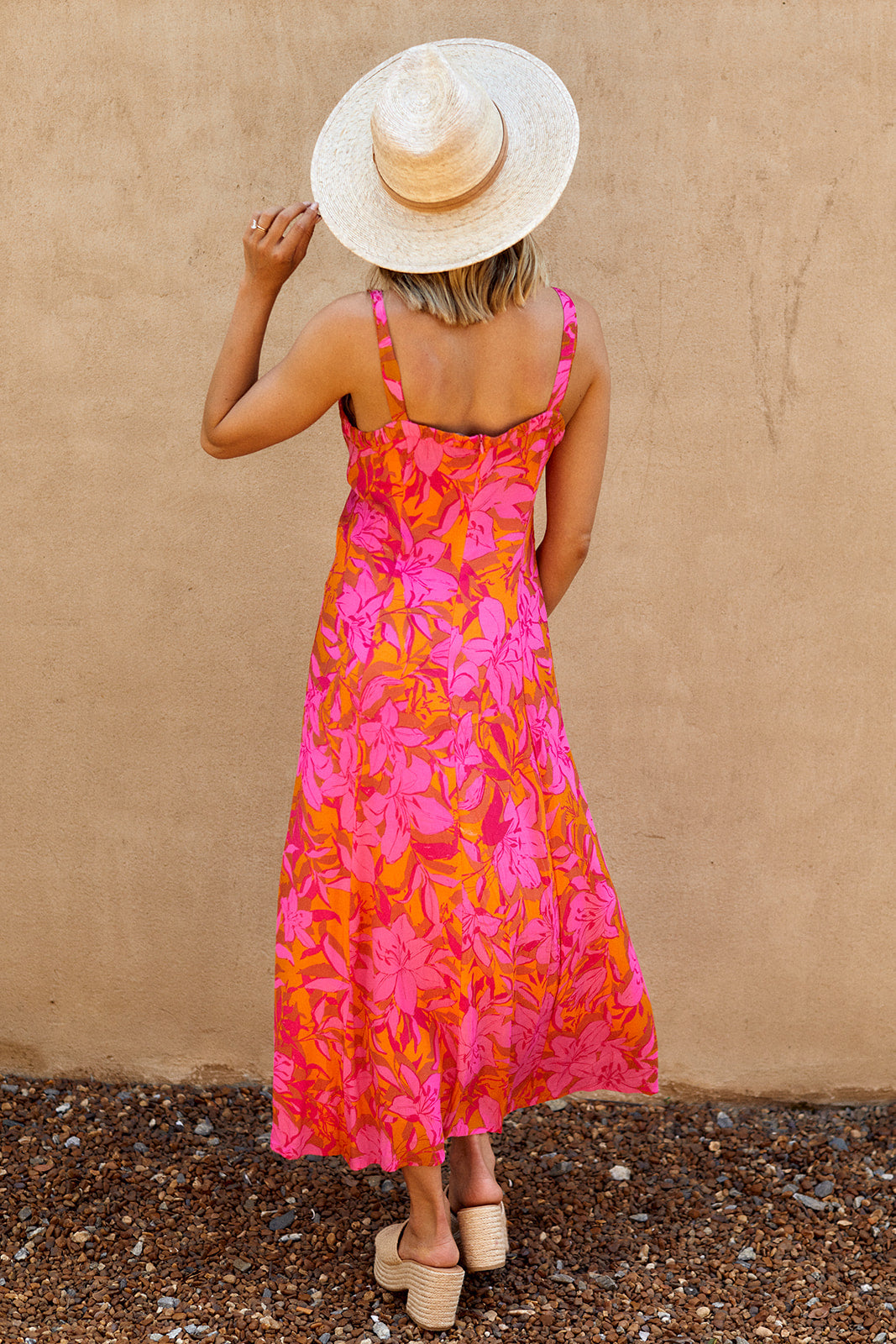 Bright and vibrant, the Astoria Floral Midi Dress is a must have this summer! This dress features a slit and zip closure. Pairs perfectly with sandals or heels.