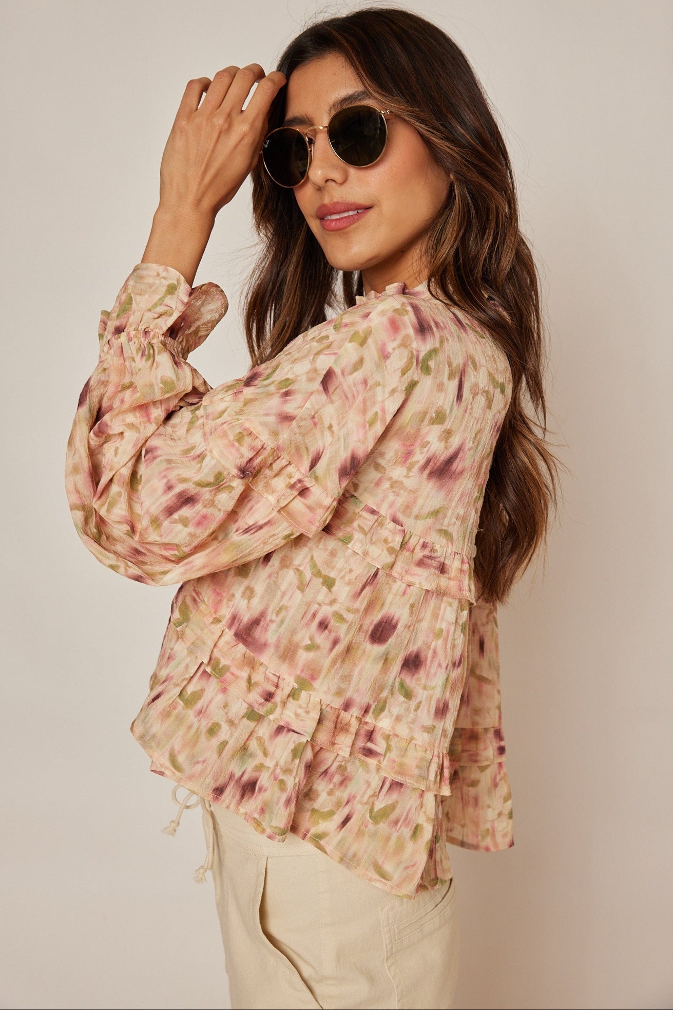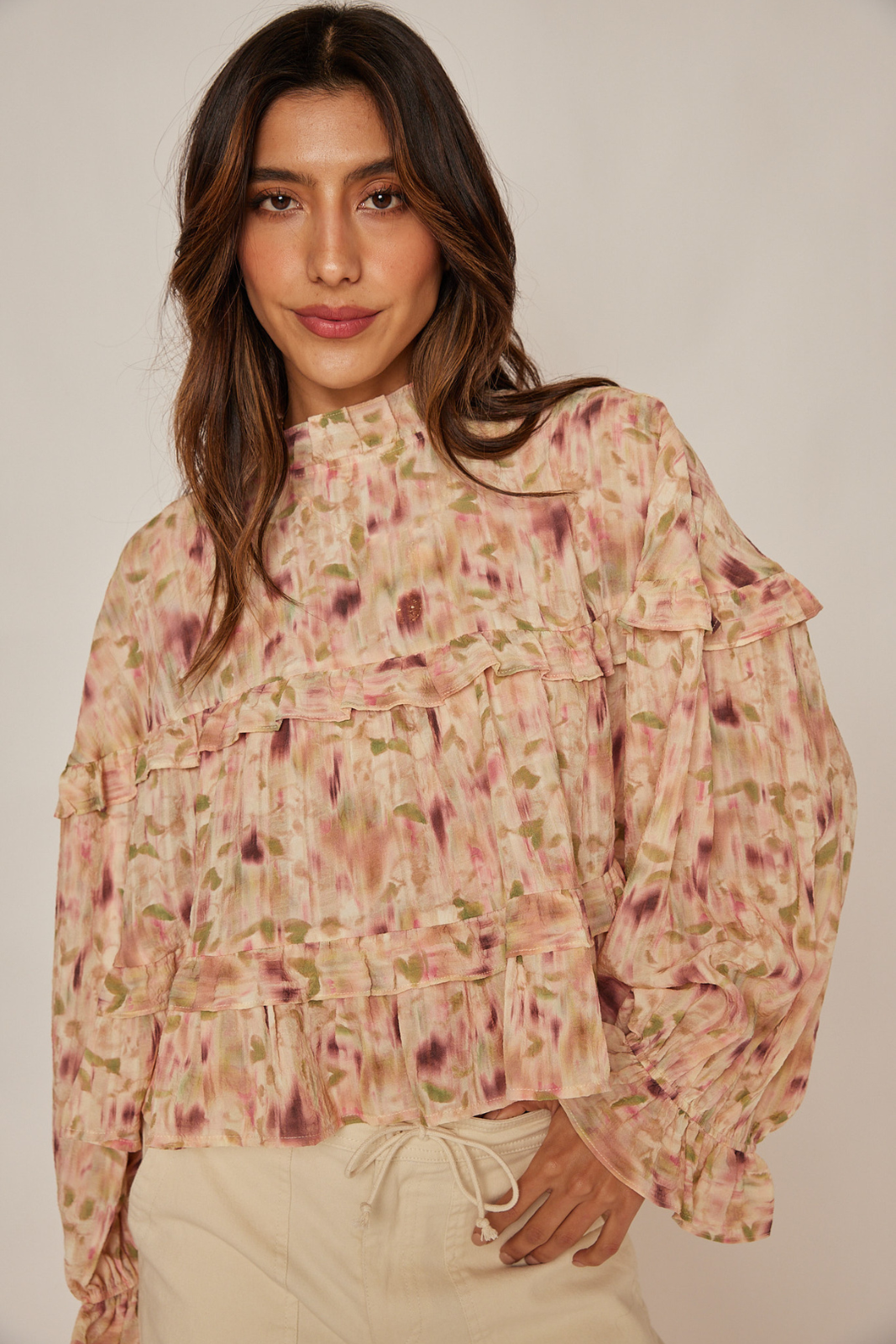 Get ready to turn heads with the Betty Floral Frilly Blouse! With a high neck and long sleeves, this blouse combines elegance with comfort. Featuring a beautiful floral pattern and delicate frilled details, you'll be blooming with style.