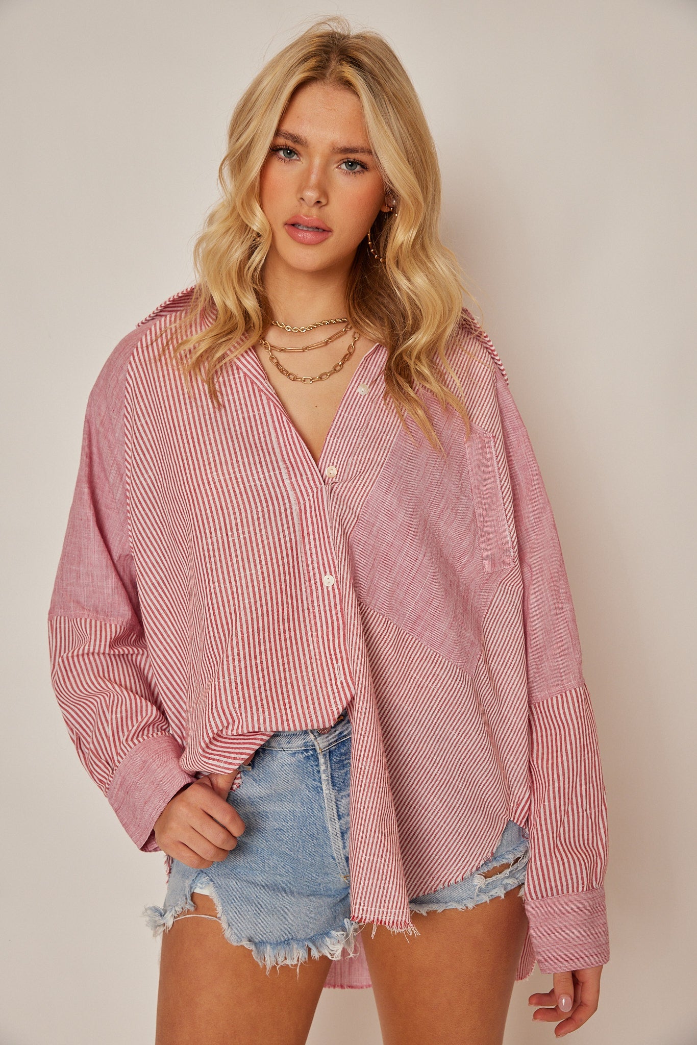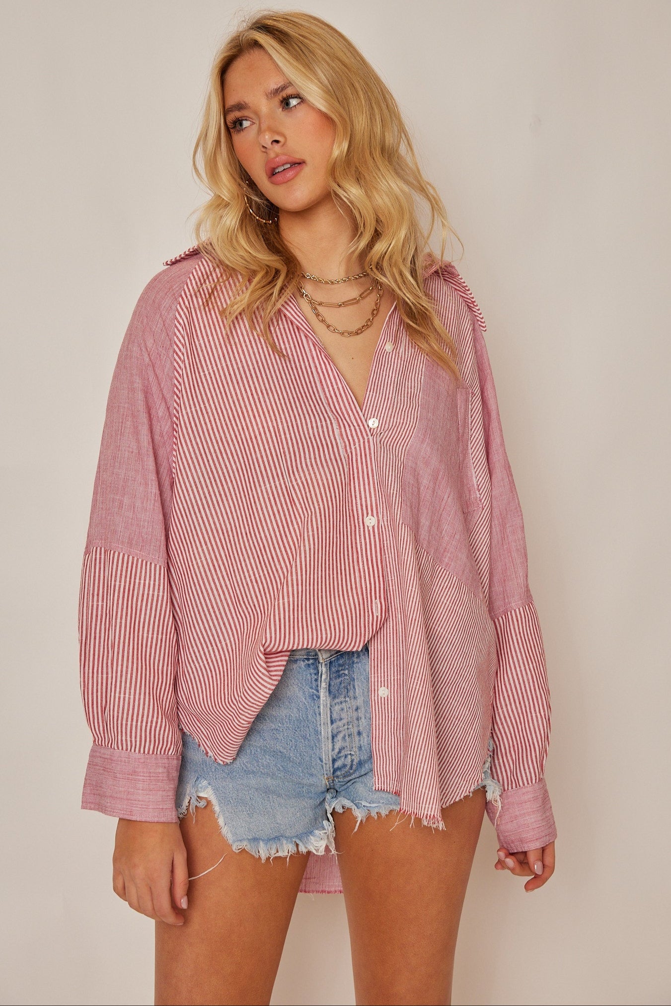 Effortlessly elevate your everyday style with the Binita Striped Button Up. Featuring a classic button-up design and timeless striped pattern. Make a statement with ease and add a touch of effortless luxury to your wardrobe.