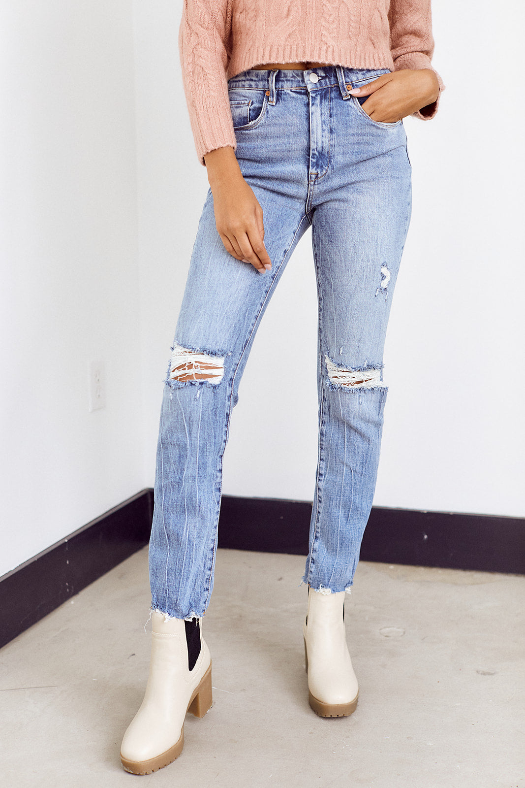 Tailored for a relaxed straight-leg silhouette in medium wash denim, the Blank NYC Distressed Straight Leg Denim are a high-rise ode to vintage dressing. These jeans feature a zip to button closure, 4 functional pockets and distressing throughout. Pair with a bodysuit and blazer for a work-to-weekend look. **SALE ITEMS ARE FINAL SALE.