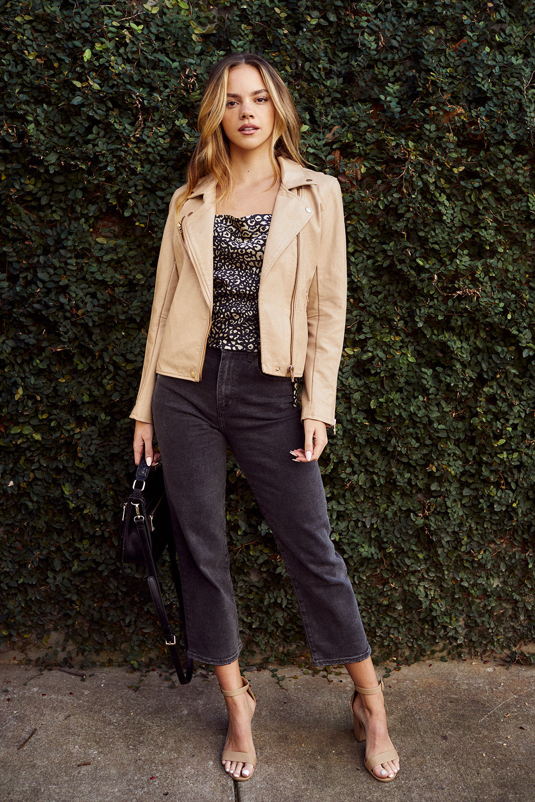 The Blank NYC Matte Black Leather Jacket is a basic vegan moto with a twist. This natural jacket is finished perfectly with luxe gold trim. Pair with denim and sneakers for a perfect night out look!