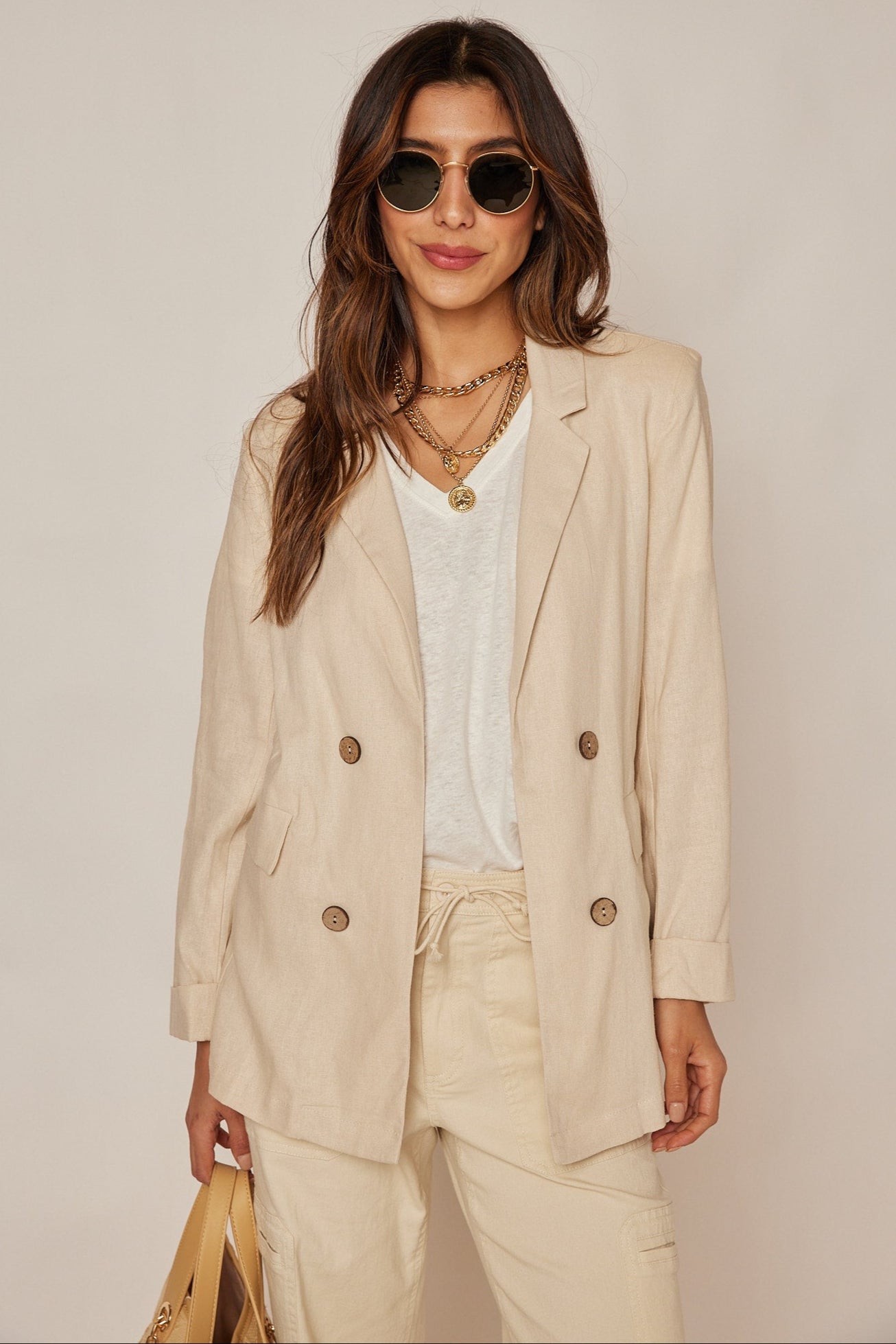 The Bradley Light Linen Oversized Blazer is the perfect addition to your spring wardrobe. Its lightweight fabric and slightly oversized fit make it ideal for any springtime occasion. Say goodbye to stuffy blazers and hello to effortless style with this fun piece.