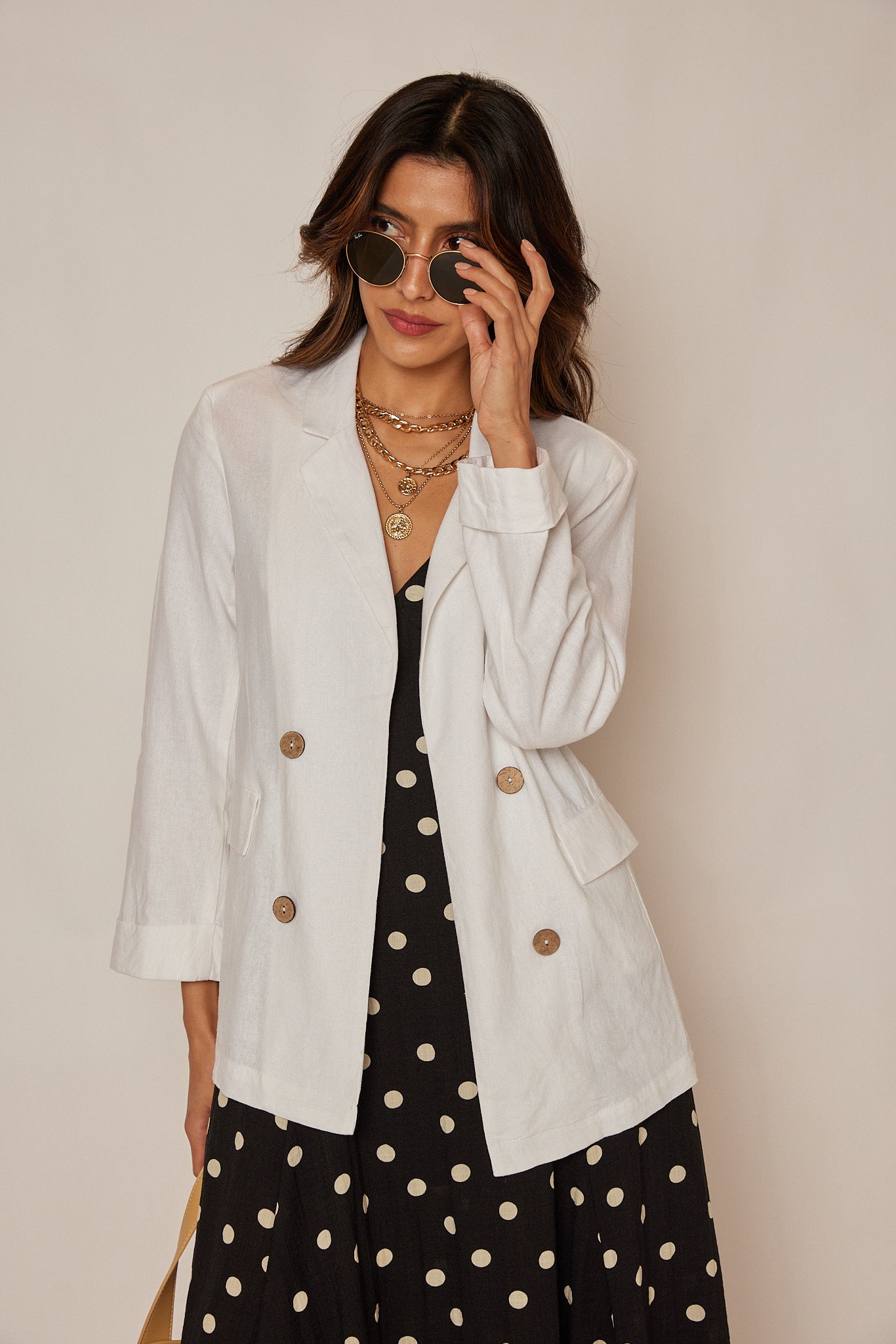 The Bradley Light Linen Oversized Blazer is the perfect addition to your spring wardrobe. Its lightweight fabric and slightly oversized fit make it ideal for any springtime occasion. Say goodbye to stuffy blazers and hello to effortless style with this fun piece.