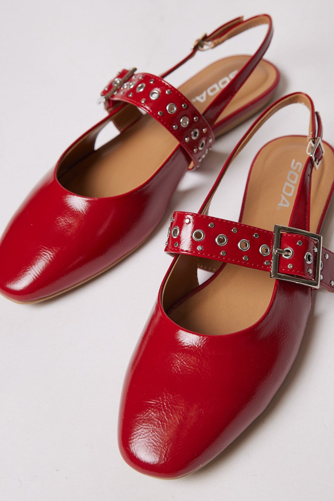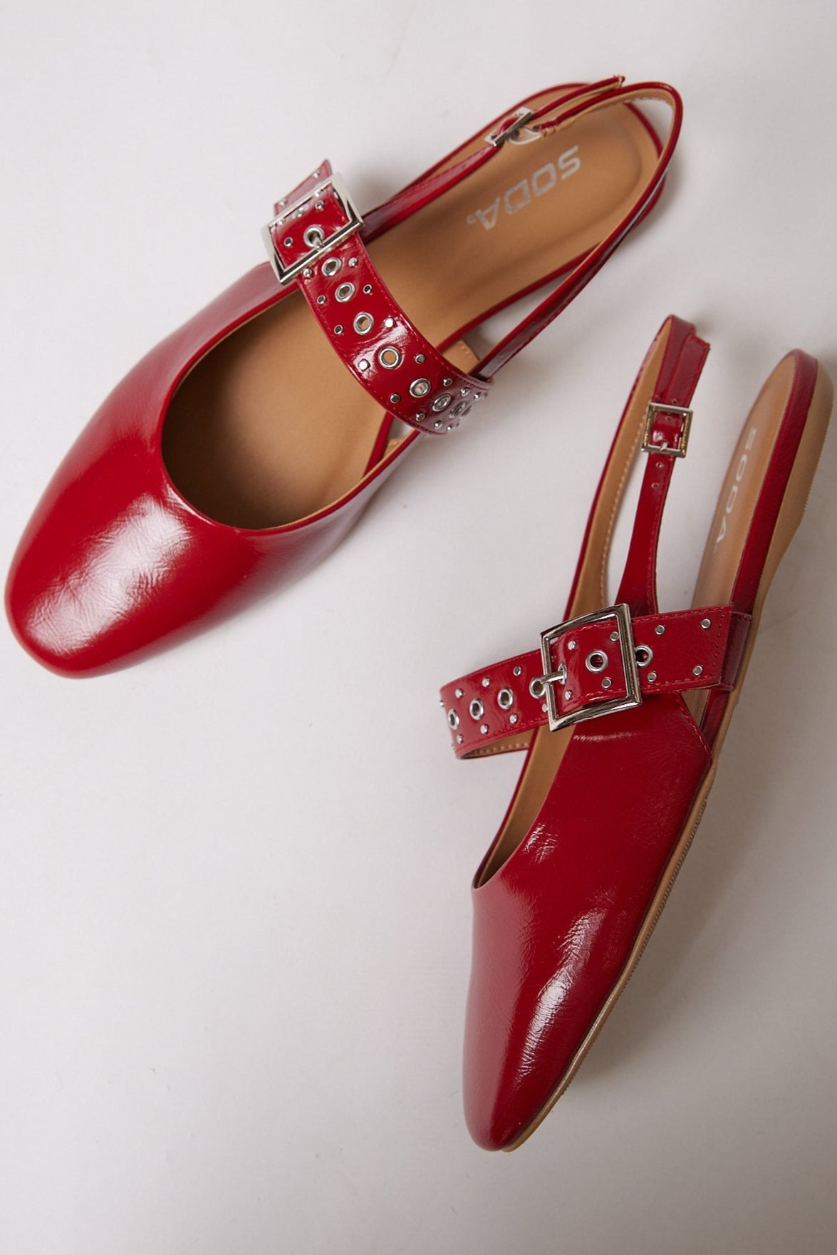 Elevate your style with our Buckle Ballerina Flats, featuring a heel strap for added support. Stay on trend with this stylish and versatile shoe, perfect for any occasion.