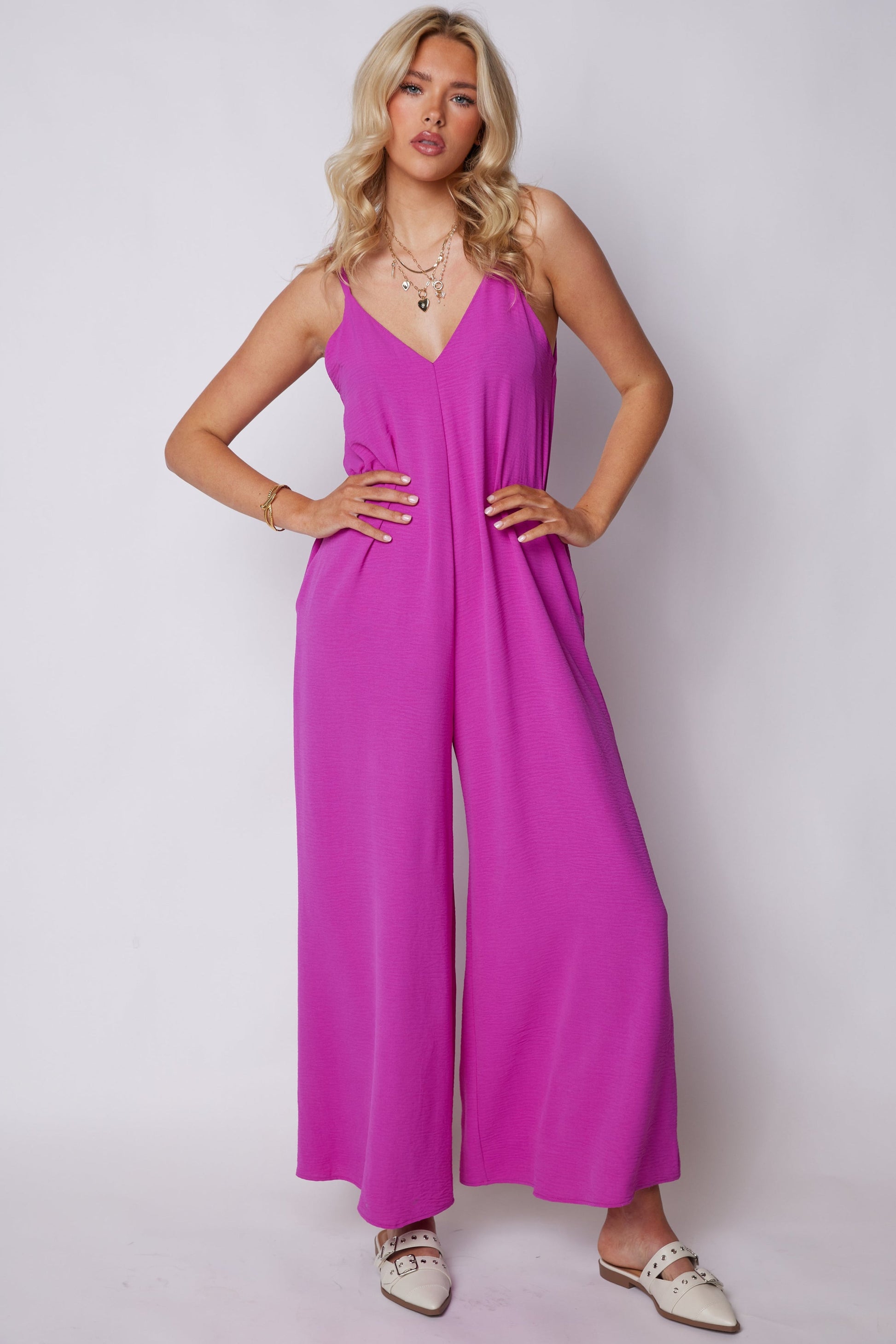 Experience effortless chic in the Cara Crepe Cami Jumpsuit. With its stylish jumpsuit design, flowy wide leg, and alluring open back, this piece is perfect for any occasion. Make a statement and turn heads with this must-have addition to your wardrobe.