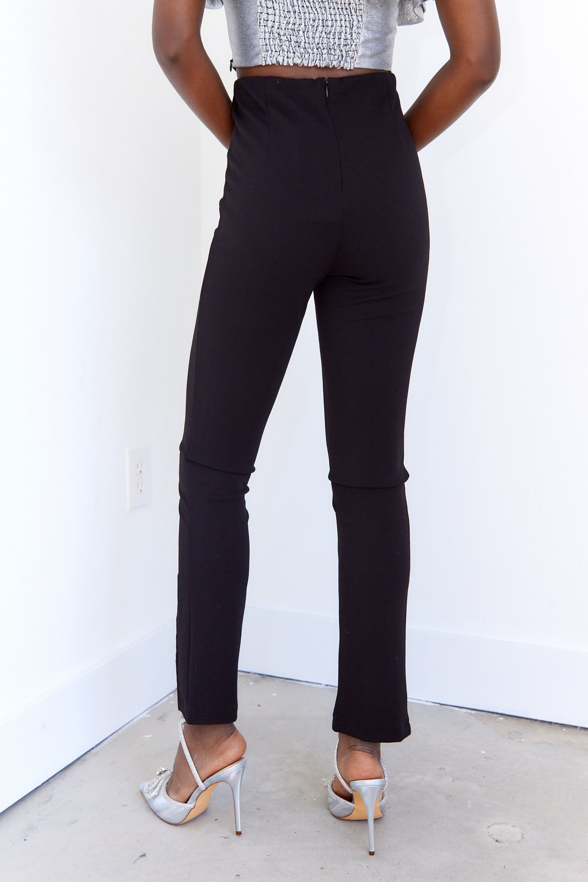 SALE - Cece Rhinestone Front Slit Hem Pants