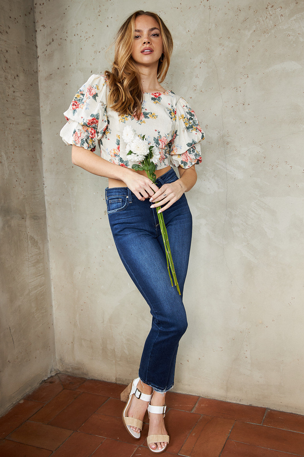 SALE- Clara Floral Puff Sleeve Cropped Blouse