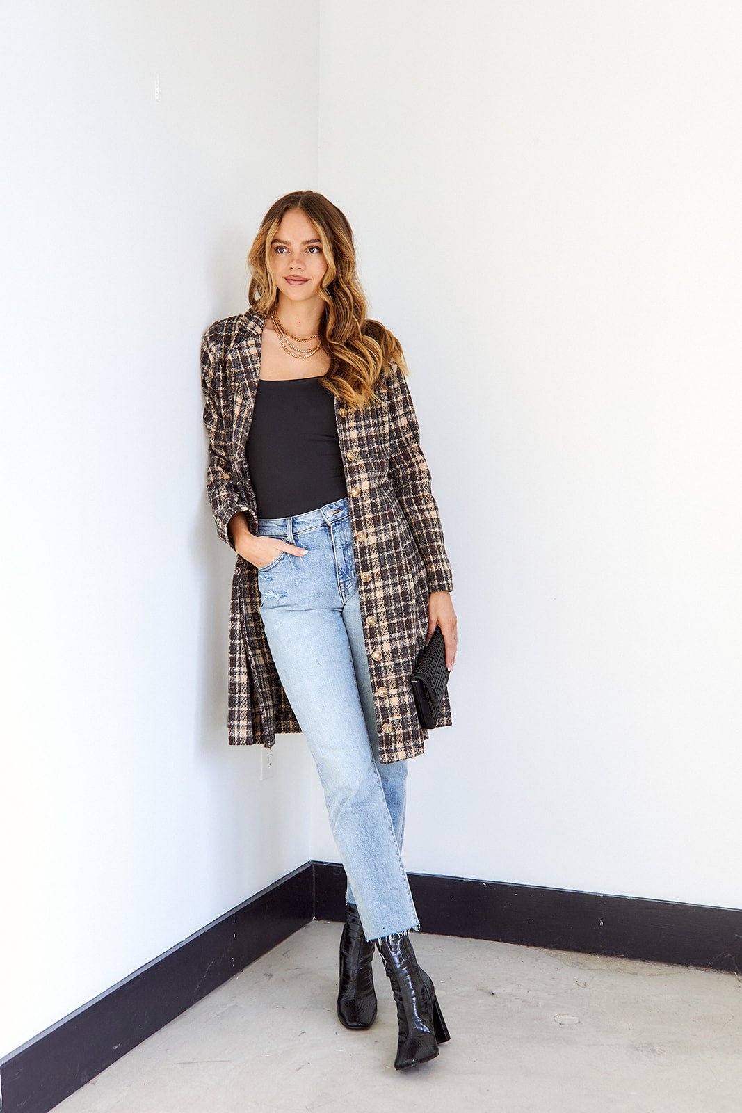 Make a statement in the Connie Plaid Coat! This coat is everything you need and more for the winter season. Pair with a bodysuit and jeans.