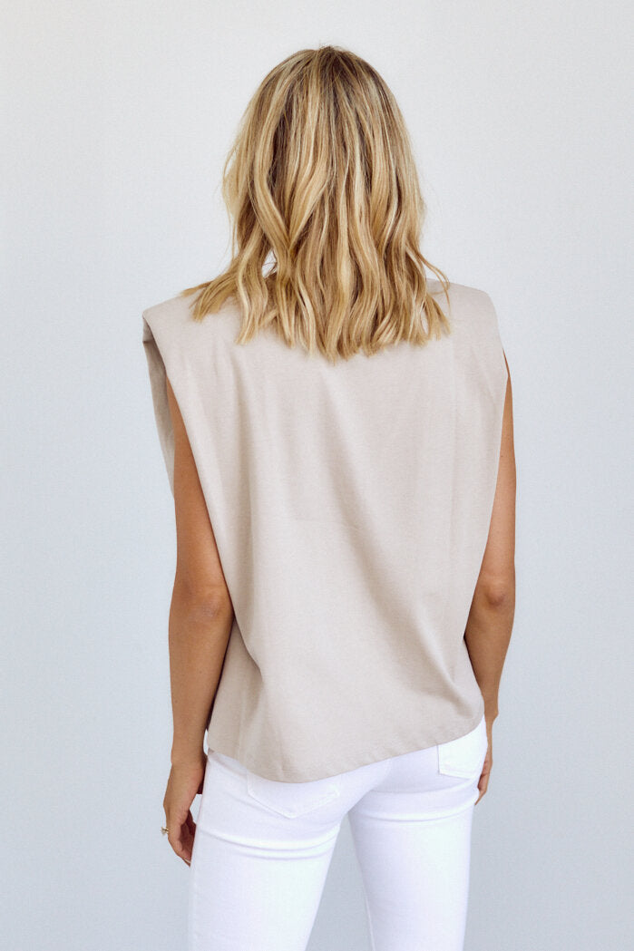 An elevated basic to add to your everyday wear! The Croby Shoulder Pad Tee is sleeves with padded shoulders, has a crew neck, and a relaxed fir throughout. Style this top with denim for a comfy casual look.