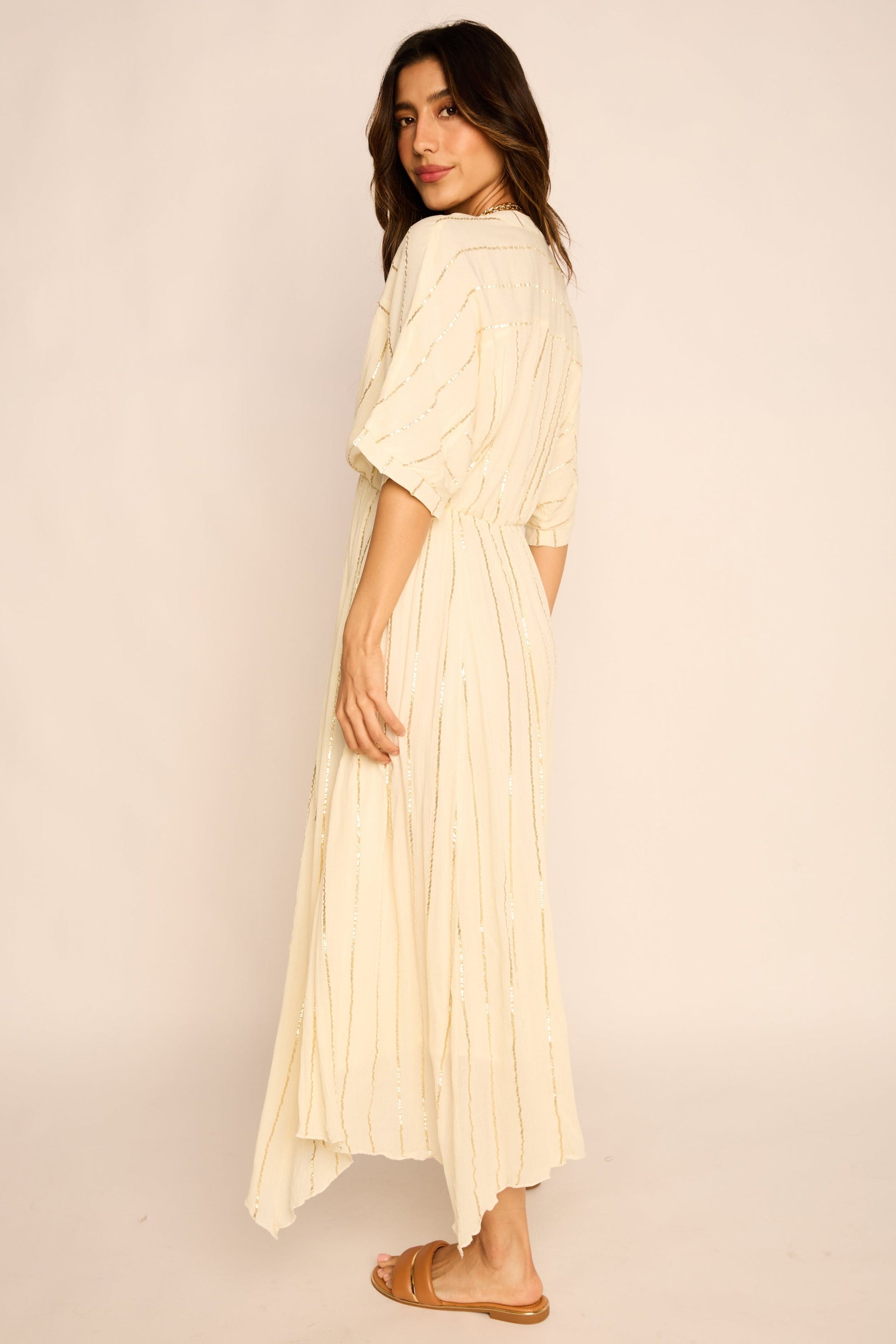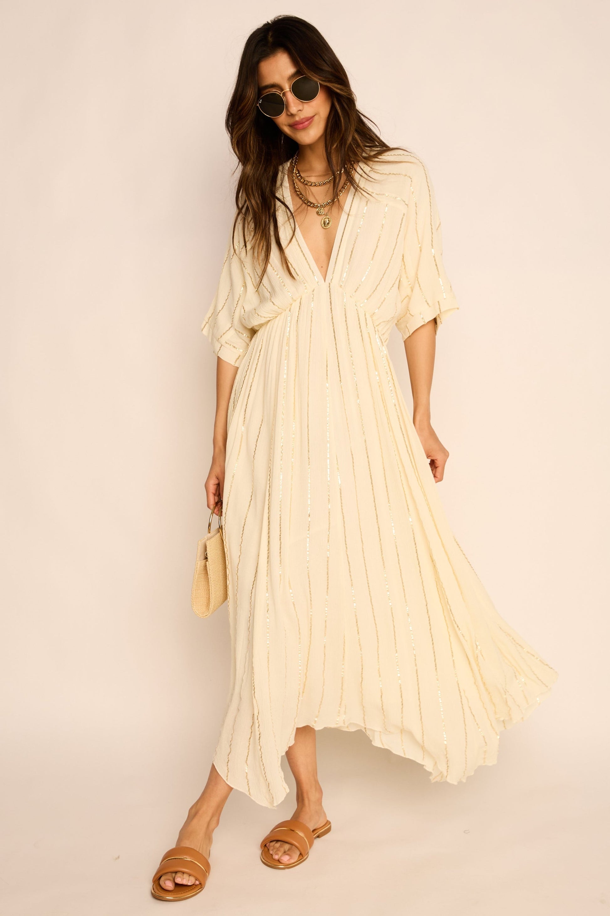 The Daisy Kimono Sleeve Maxi Dress features a dreamy lightweight fabric, elegant drape, and a graceful silhouette—perfect for a romantic and effortless look.