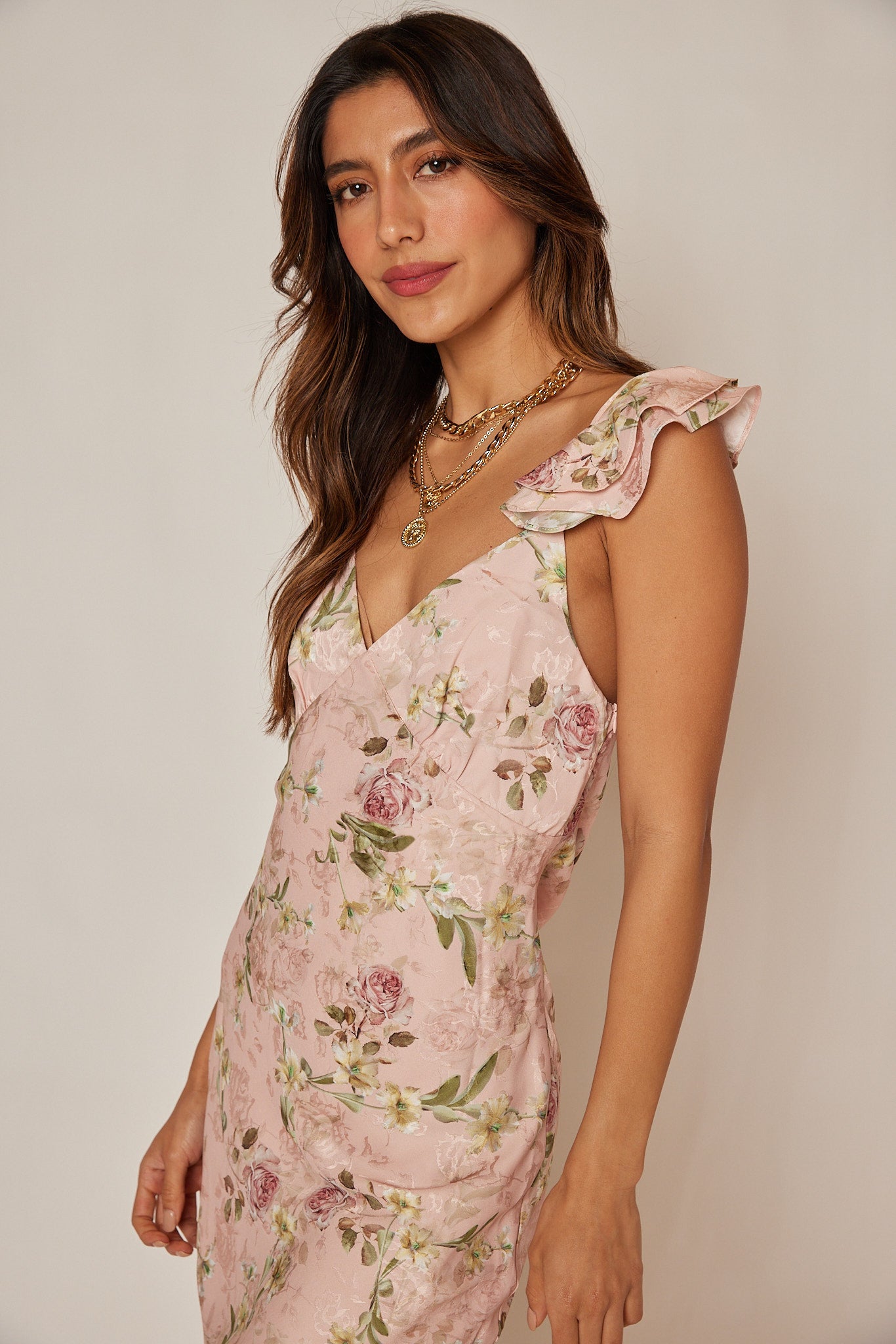 Radiate romance in our Elise Ruffled Woven Blush Maxi Dress! With soft hues and graceful blooms, it’s the perfect blend of elegance and charm for any occasion