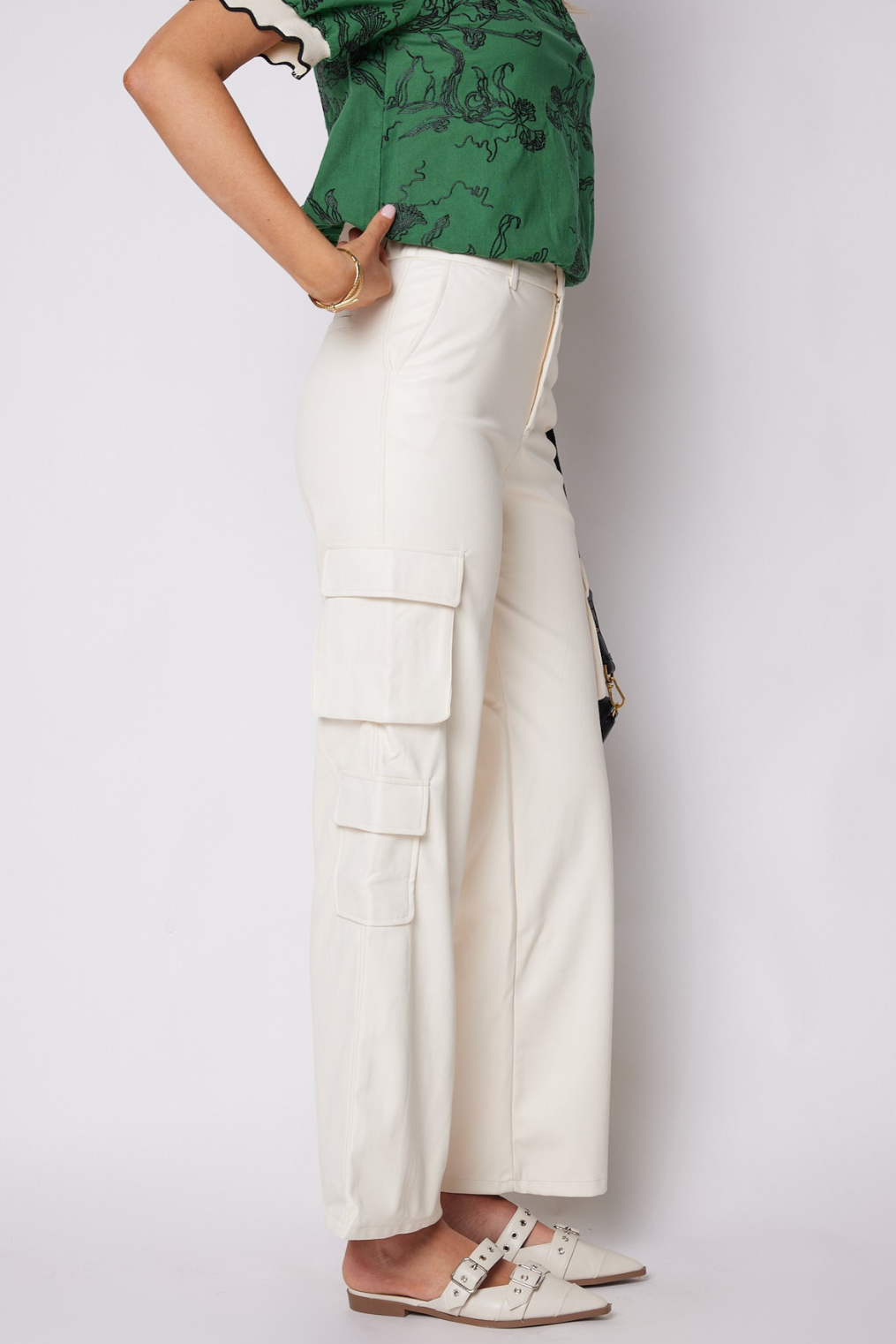 These Jaimie Faux Leather Cargo Pants make a statement with their unique design. Crafted with luxurious faux leather, they exude an air of exclusivity. The perfect addition to your wardrobe for those seeking to make a stylish impact.