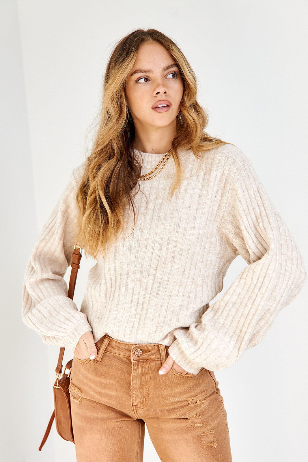 The Greyton Ribbed Crop Sweater is your new everyday sweater staple! This sweater is draped in a loosely-fitted rib knit and features wide sleeves. Pair with colored denim and boots to complete the look.