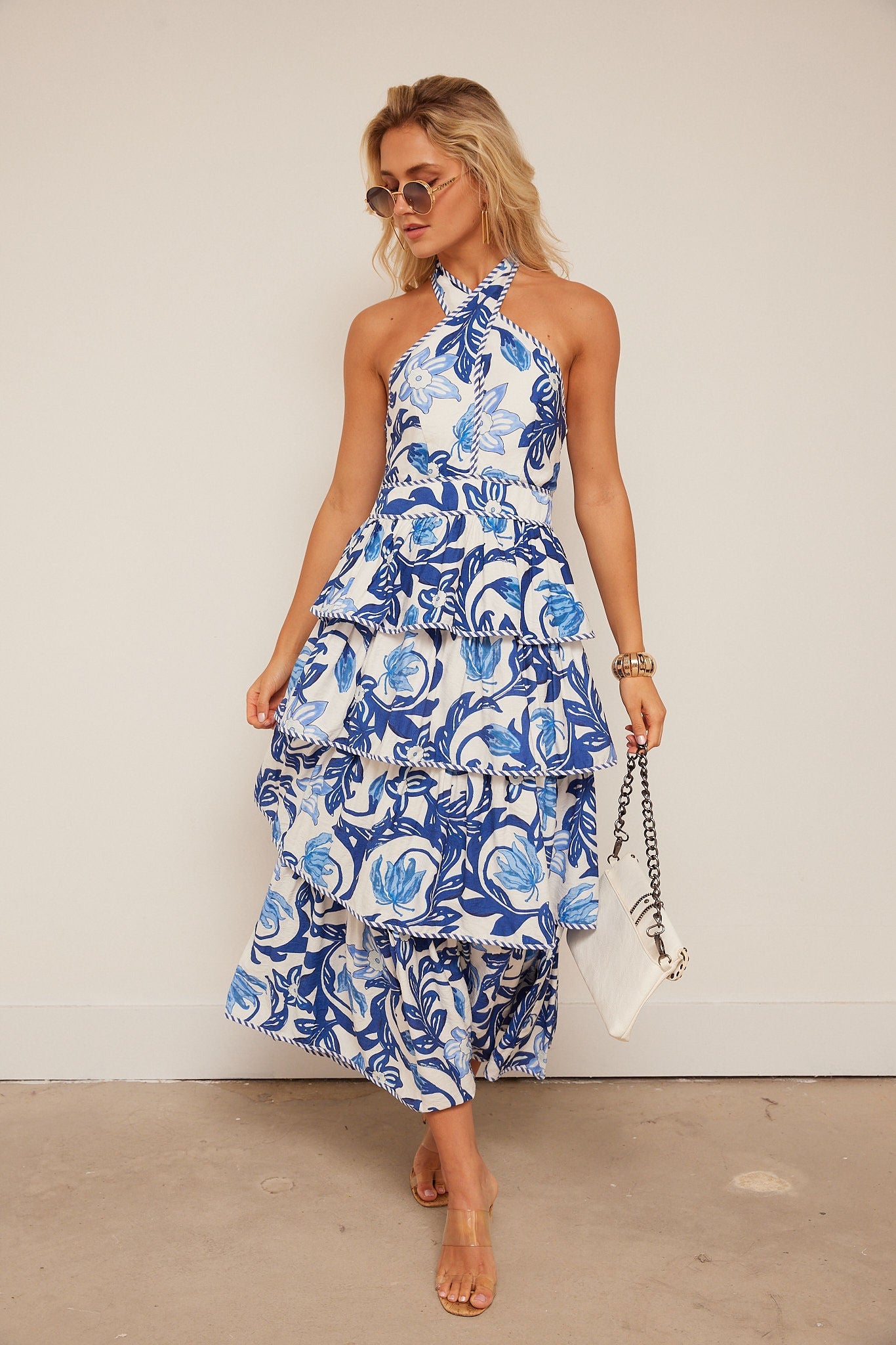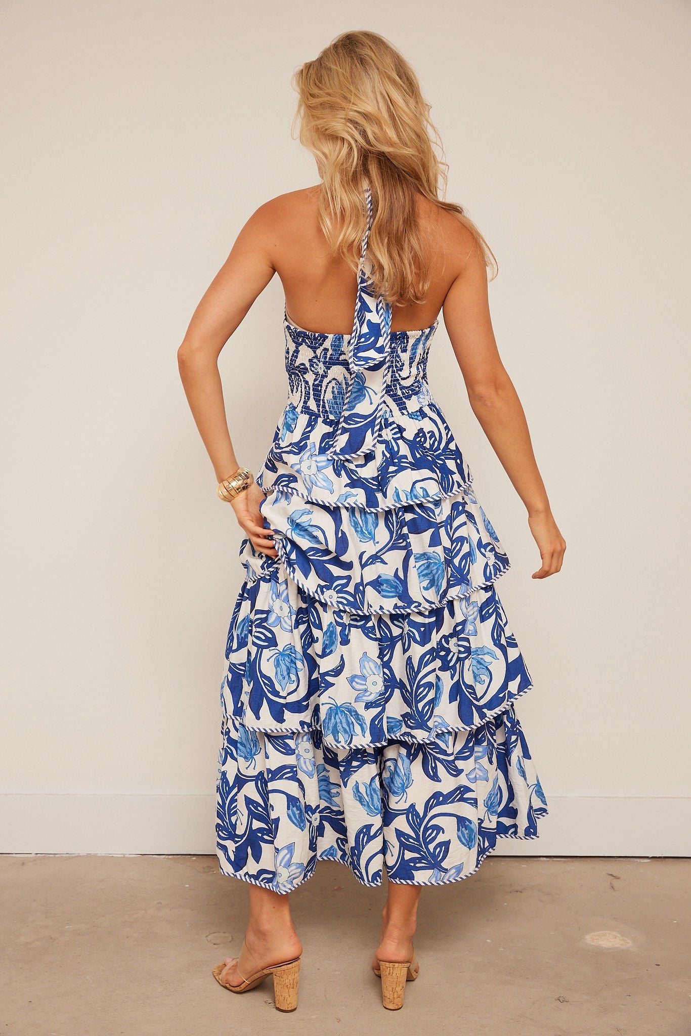 Halley Floral Print Tiered Midi Dress