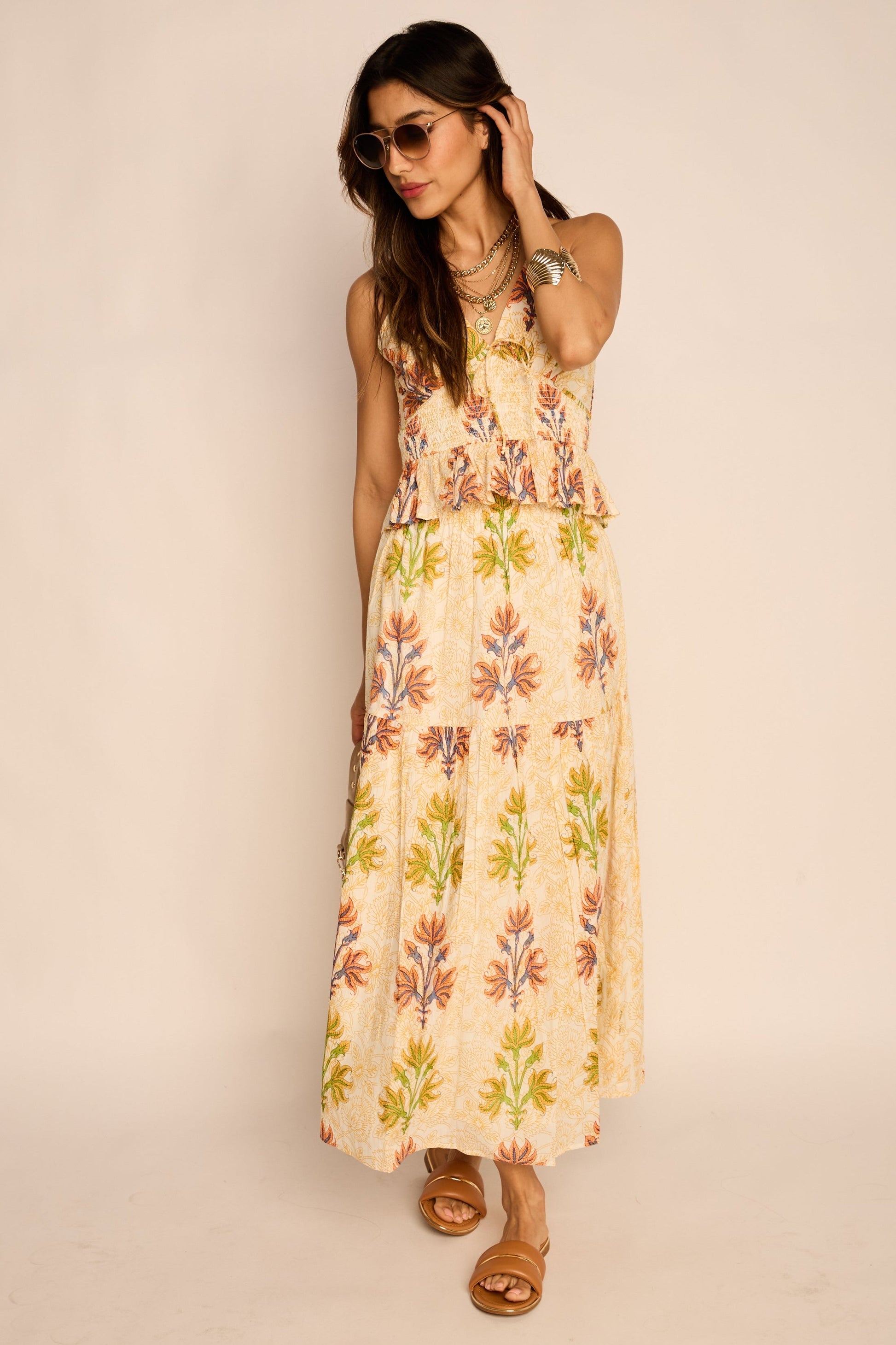 Jaci Printed Tiered Midi Skirt