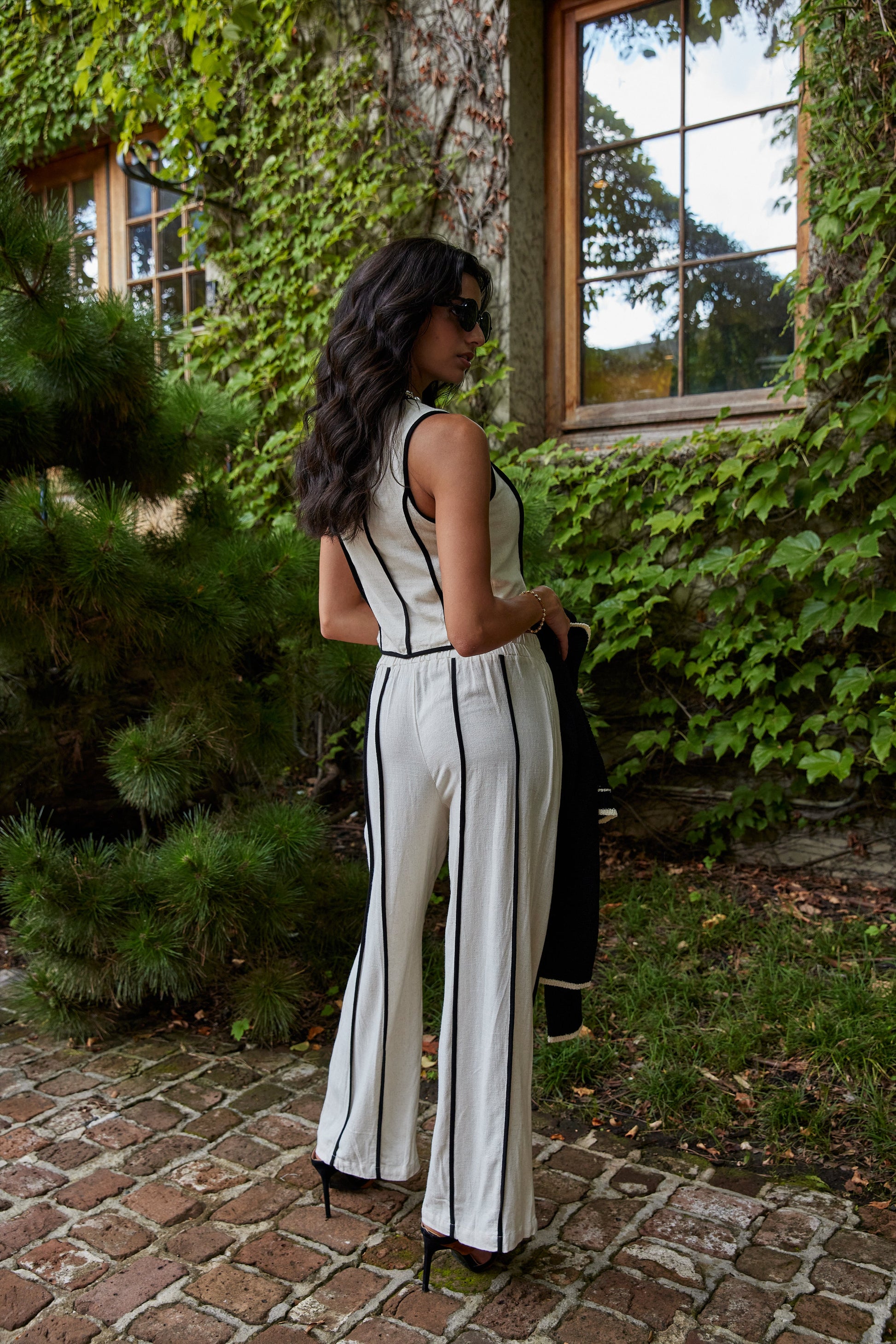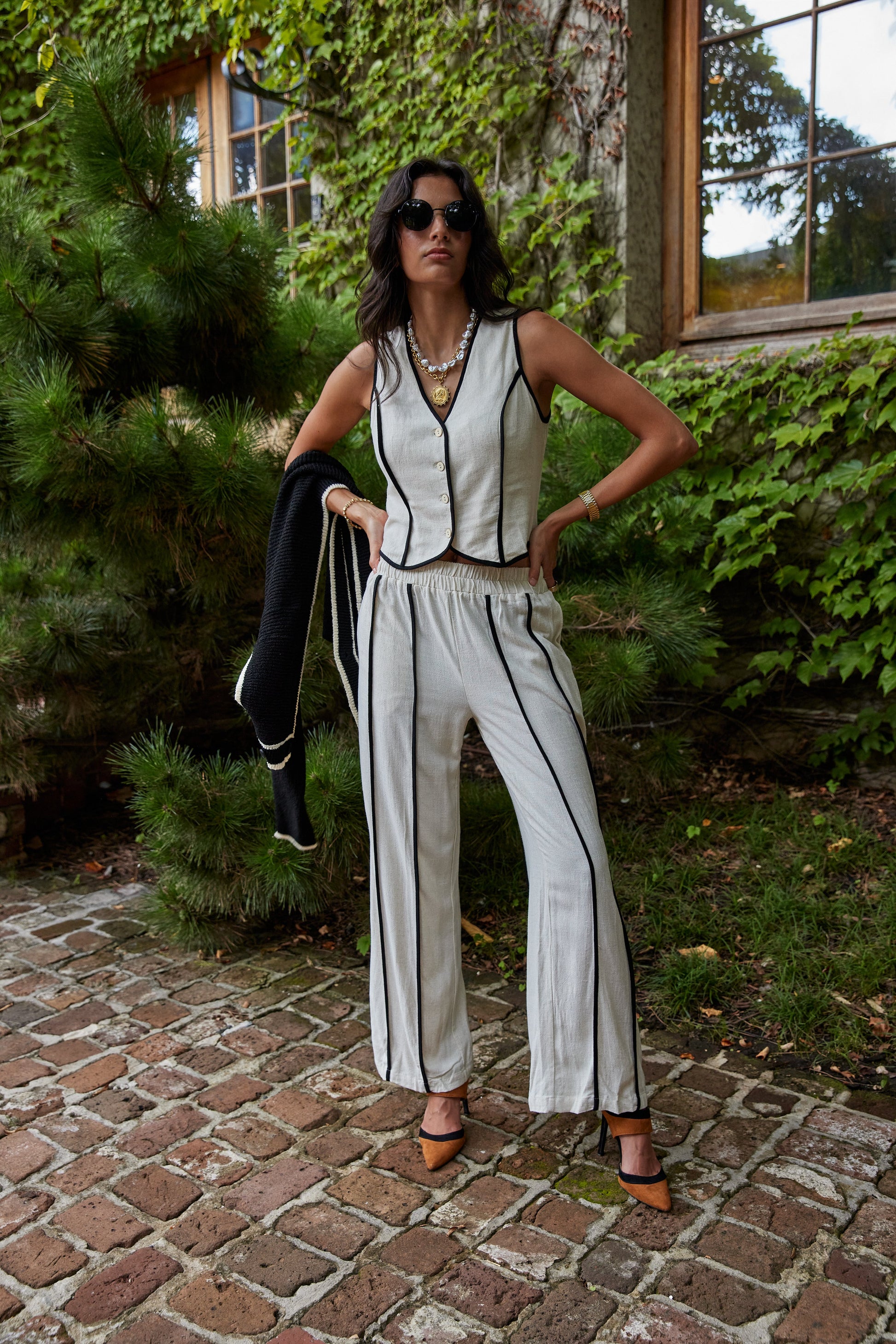 Jessie Black Stitch Linen Pants