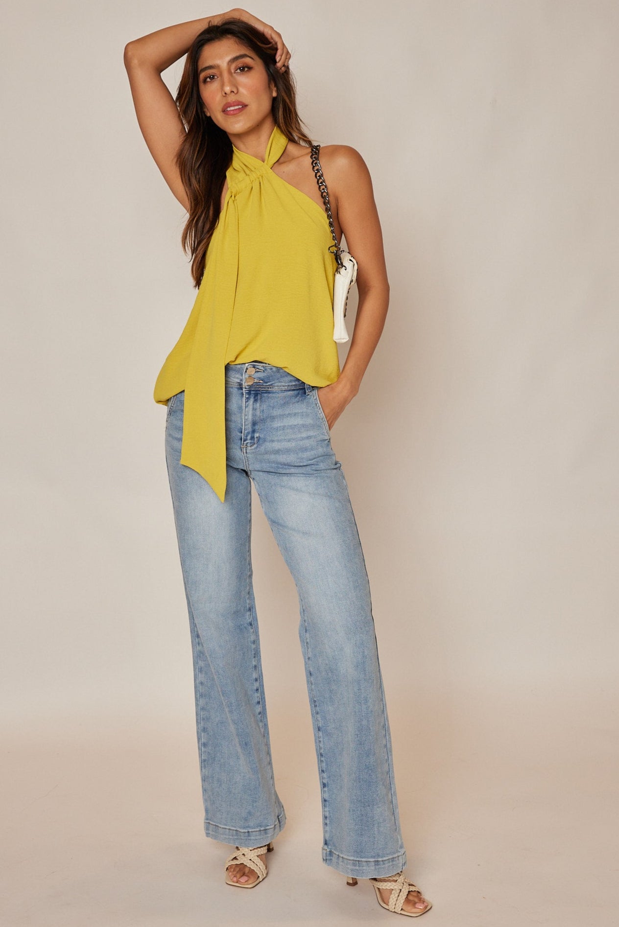 Get ready to turn heads in the Julie Wrap Around Halter Top! Featuring a fun pop of color, this top is perfect for your next adventure. Embrace your playful side with this must-have addition to your wardrobe.