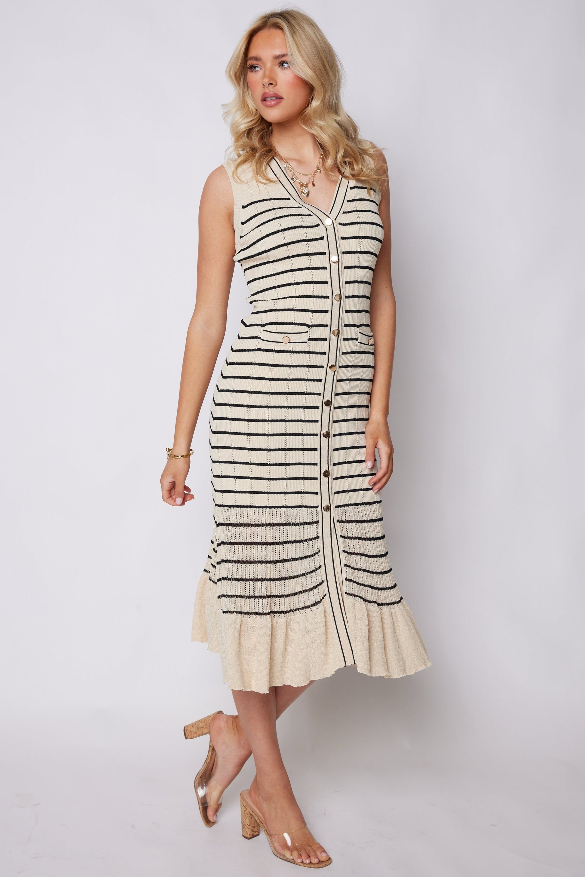 SALE - Juliette Knit Stripe Button Front Dress