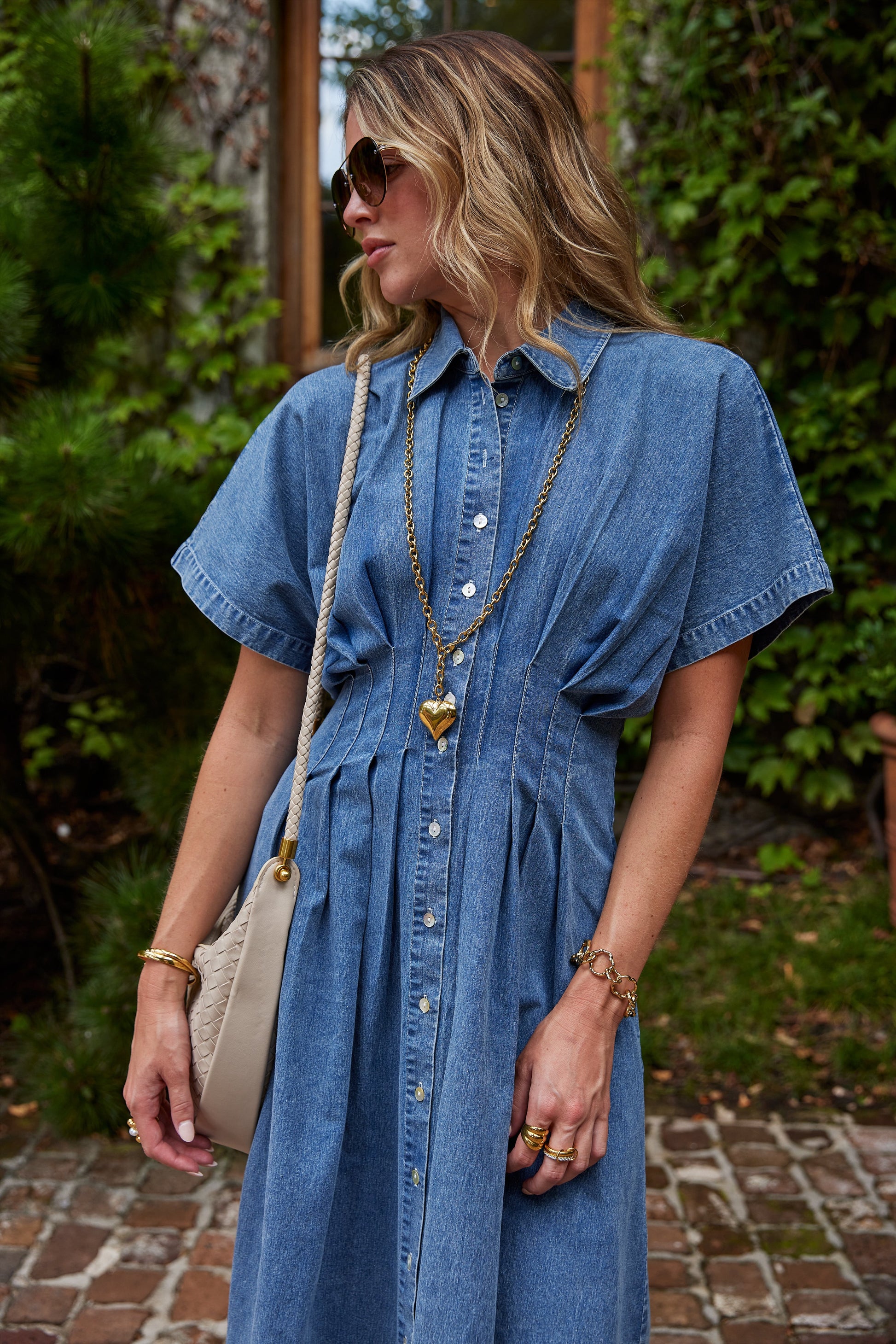 June Denim Button Down Dress