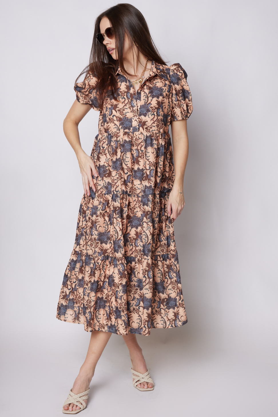 SALE - Kaylee Printed Puff Sleeve Midi Dress