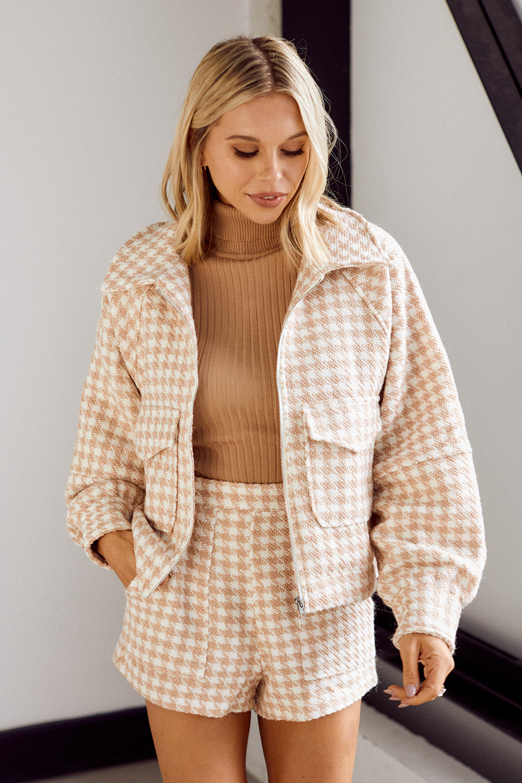 Draped in herringbone print, the Laiken Herrringbone Tweed Shorts are elegantly tailored in tweed. These shorts feature a back zip closure and two front functional pockets. Pair with the Laiken Herrringbone Tweed Jacket for a matching set.