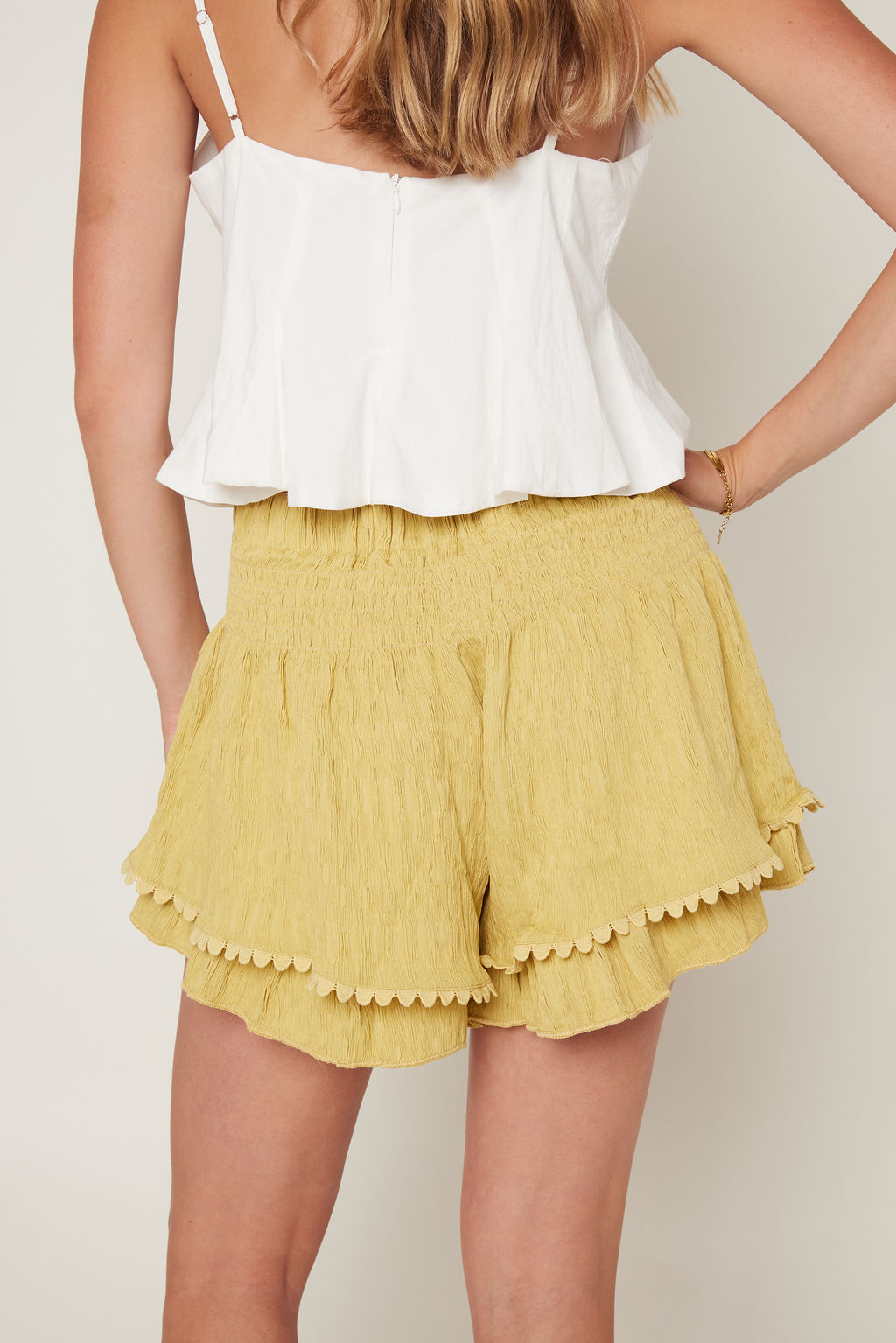 Landry Elastic Smocked Waist Ruffle Shorts