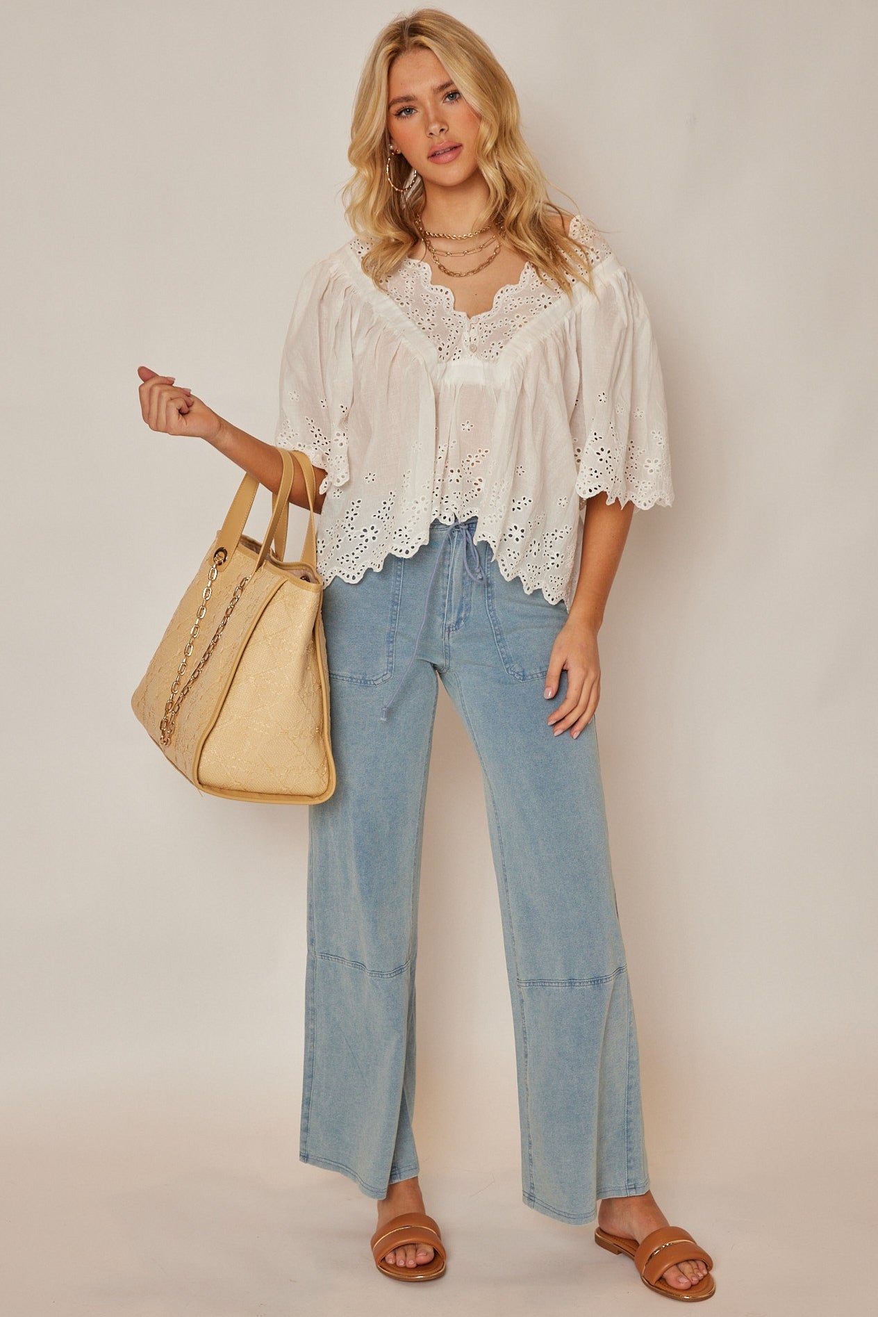 Lula Eyelet Flutter Sleeve Blouse