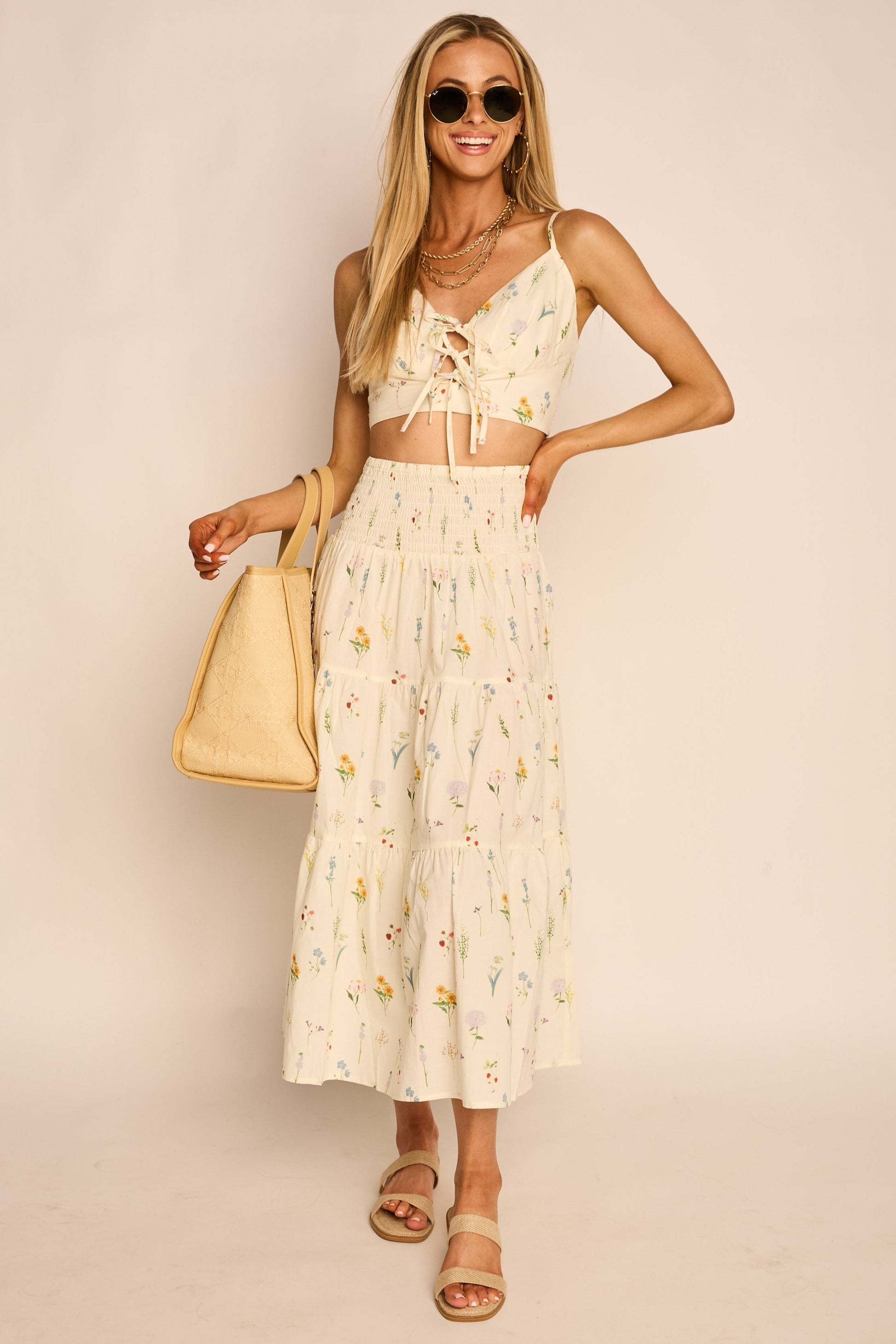 The Mary-Anne Floral Tie Front Crop Top is a charming floral top with a vibrant print, a flattering fit, and a playful, breezy design—perfect for a fresh and stylish look.