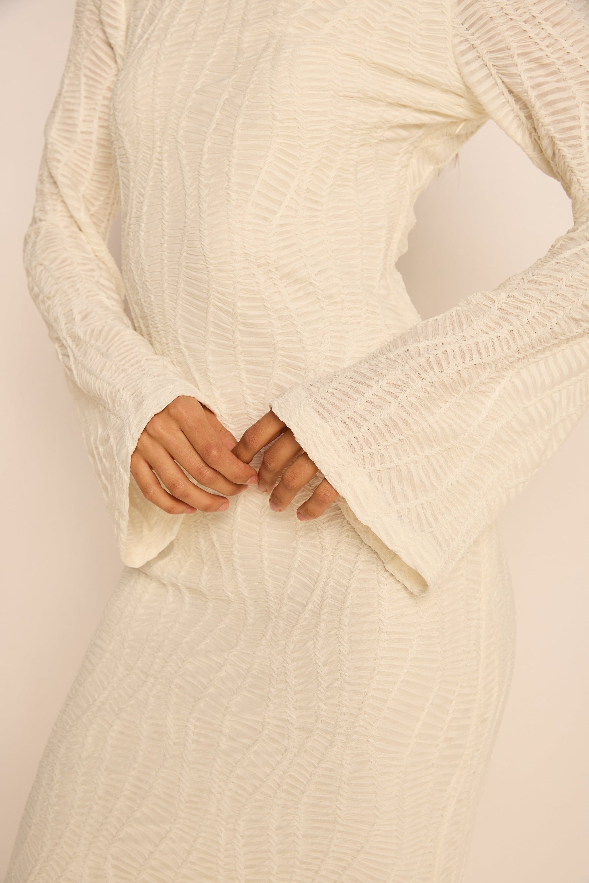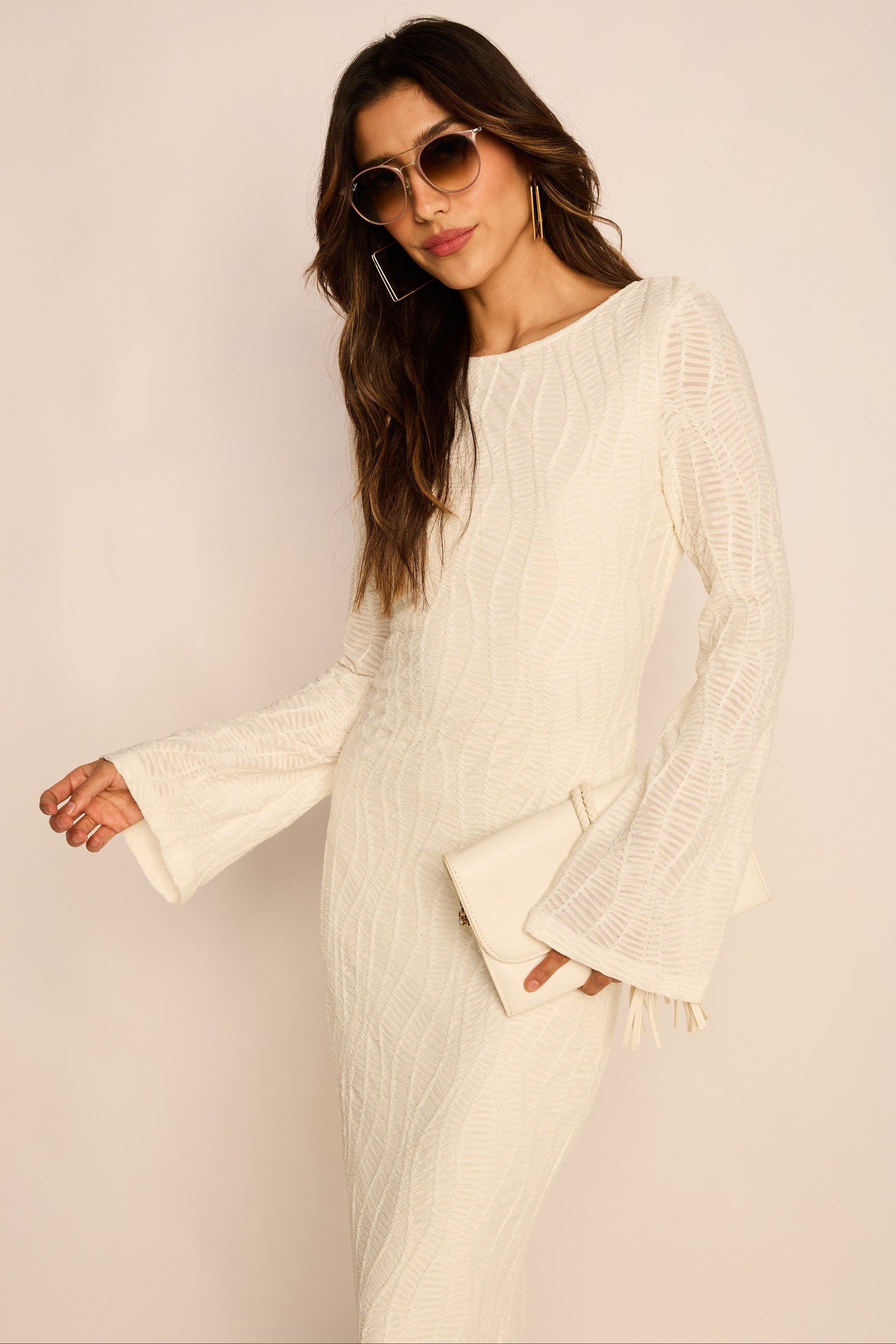 Upgrade your wardrobe with the Megan Texture Knit Sweater Dress. This white dress is effortlessly easy to wear, perfect for any occasion. Stay stylish and comfortable with this versatile piece.