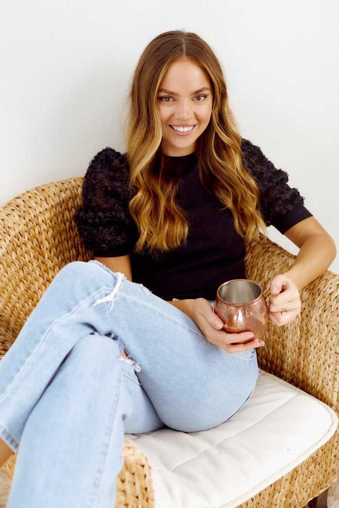 A simply romantic and feminine puff sleeve gives the Mindi Puff Sleeve Blouse a special touch. Paired with denim and a bootie, this will be a go to anytime of year.