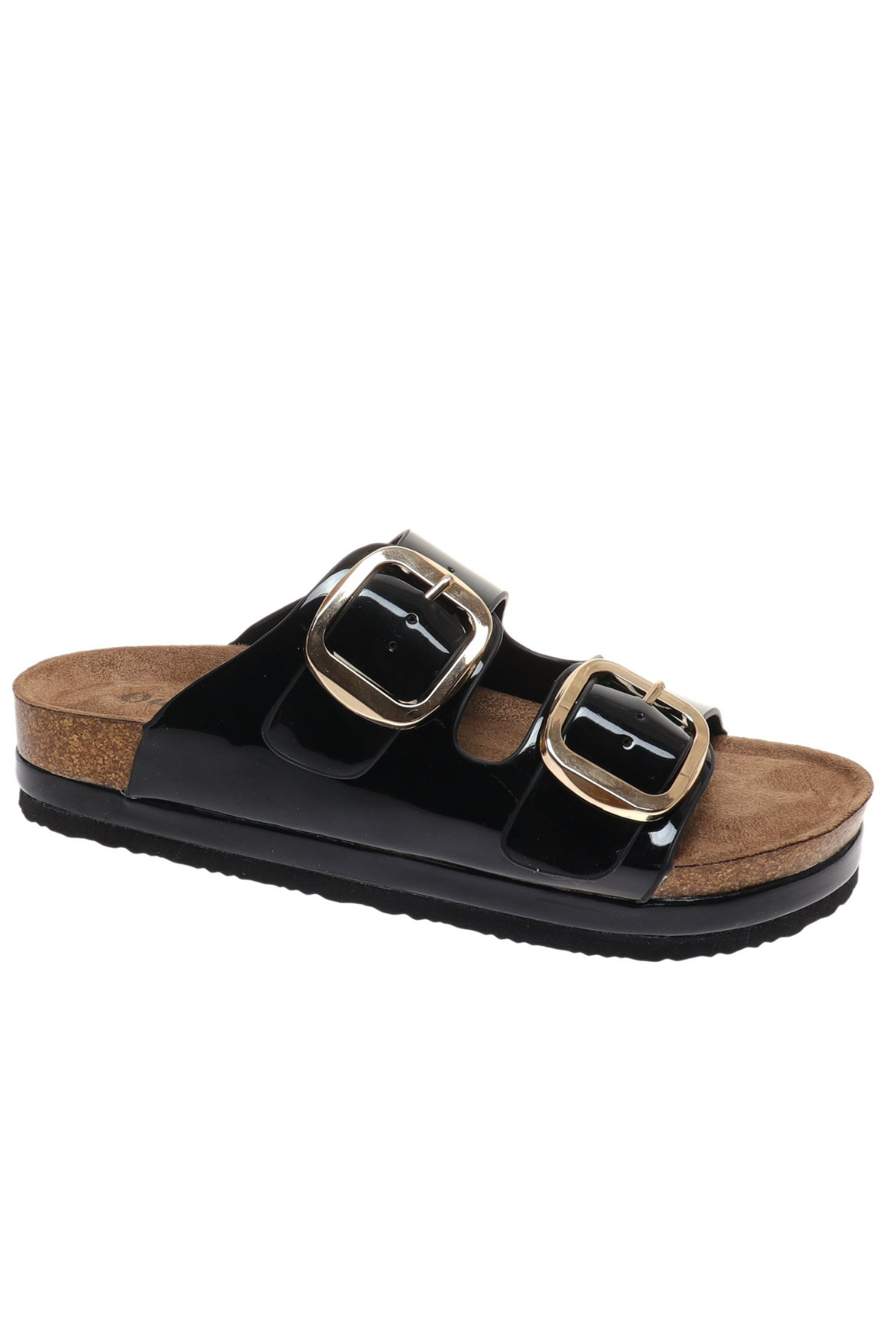 Step into style with the Miranda Double Buckle Slide! These sandals feature a round open toe for added comfort and a trendsetting double buckle design. With a slip on style and flat heel, these slides are perfect for any occasion. Upgrade your shoe game today!