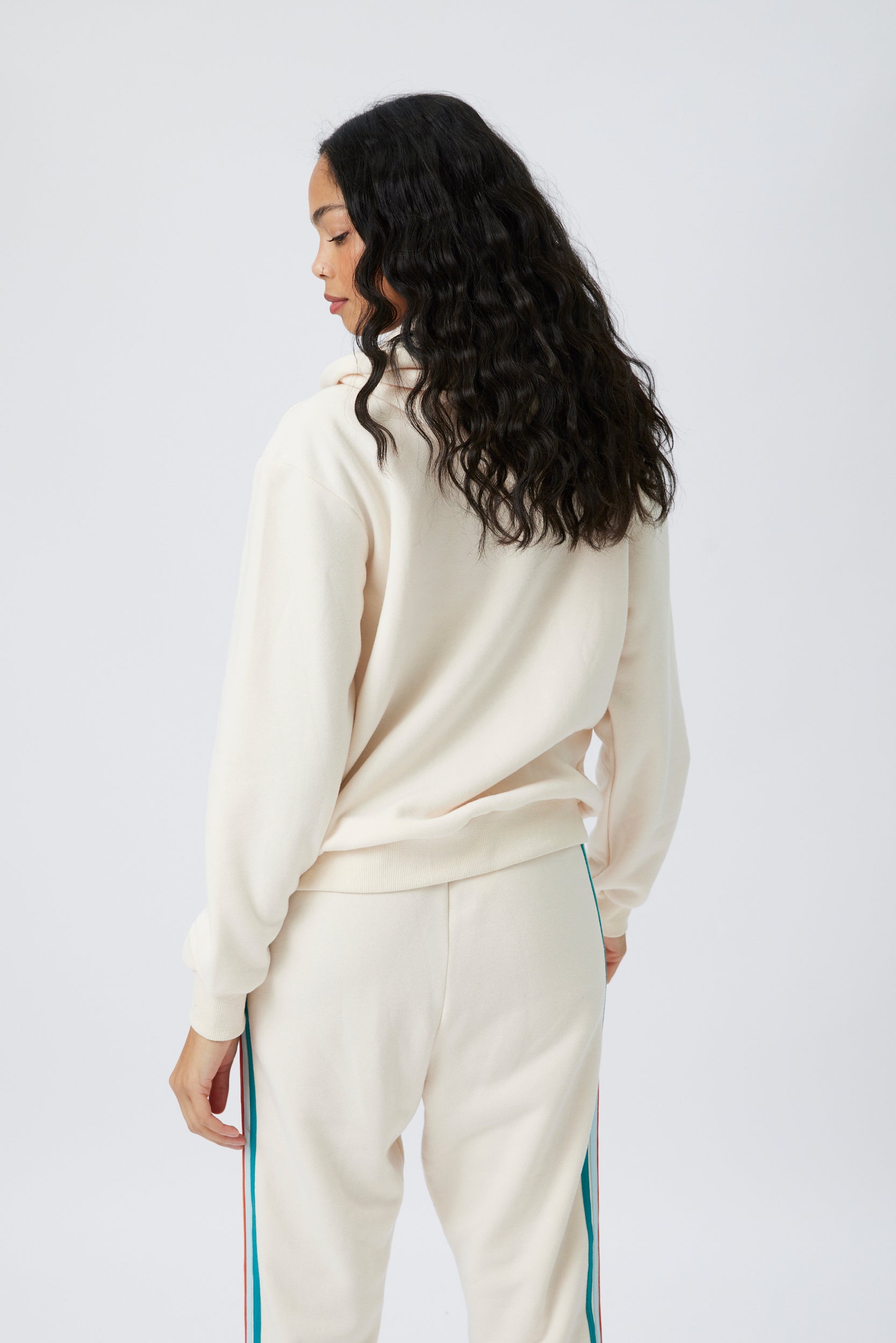 Elevate your casual look with our Monica Striped Hoodie, offering a fashionable twist with pink stripe detailing and functional front pockets. Stay stylish and comfortable with the hooded sweatshirt style and easy zip-up design.
