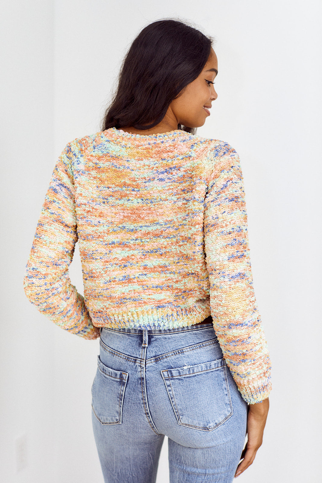 Add a pop of color to your fall wardrobe in the beautiful chenille Morales Multi Color Sweater! This sweater fits true to size and features rainbow pattern throughout. Pair with your favorite pair of denim and booties.