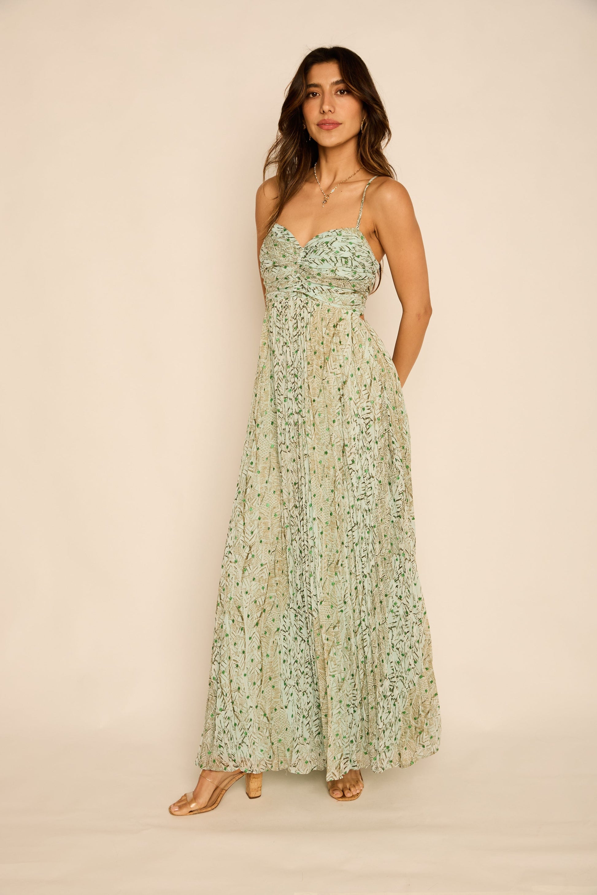 Introducing the Penelope Sleeveless Maxi Dress: the perfect addition to your summer wardrobe. Its flowy design and lightweight fabric make it easy to wear and perfect for catching a breeze. Say hello to effortless style and comfort!