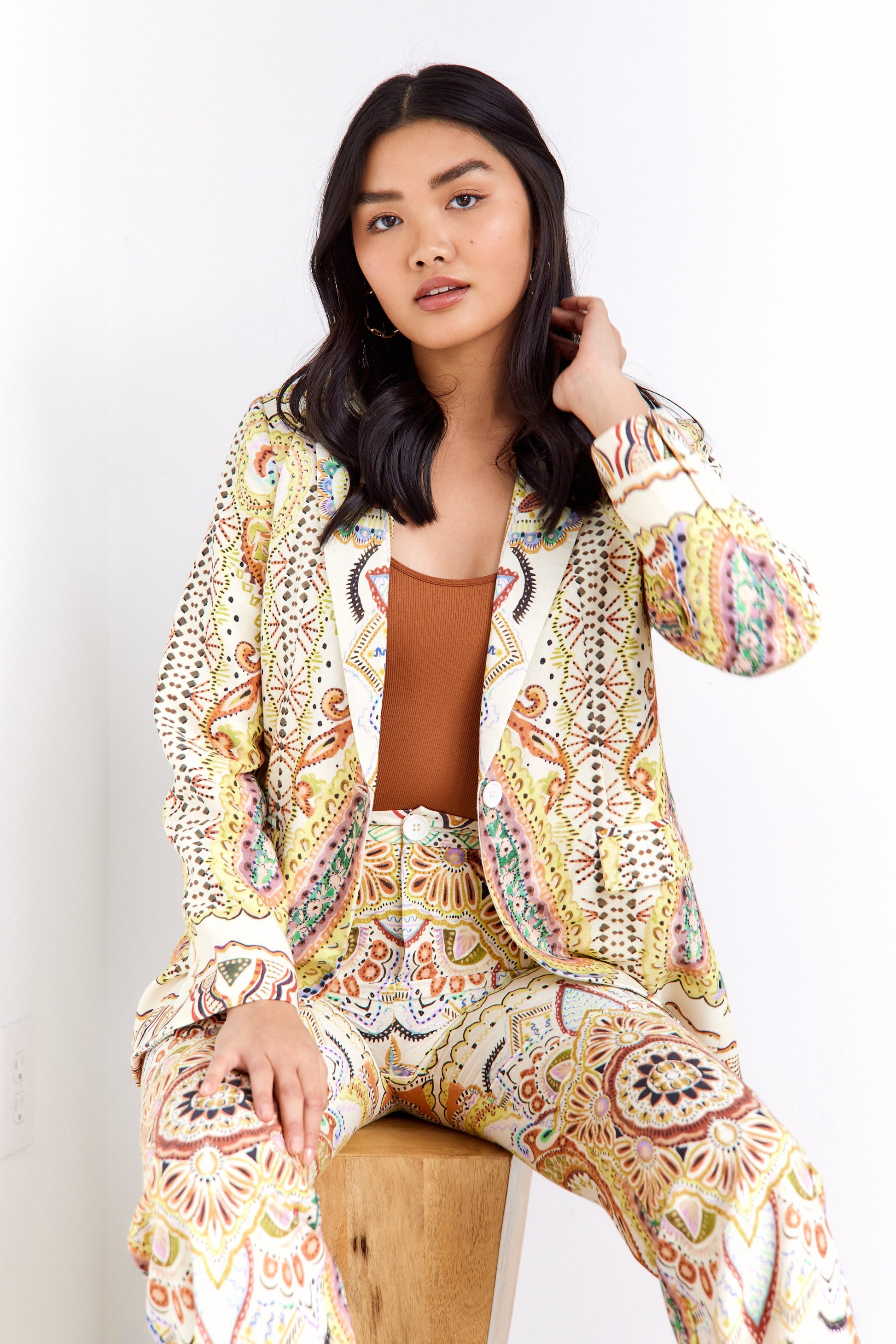 Outfitted with the Quincy Paisley Print Trouser Pant. Sold separately.