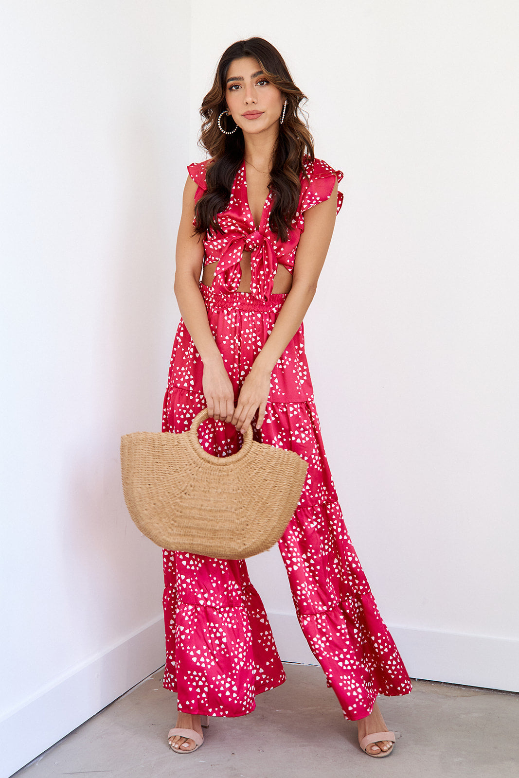 Effortlessly tied in the front, the Raley Printed Cropped Top is vacay chic! This blouse features a plunging neckline and ruffled sleeves. Pair with the