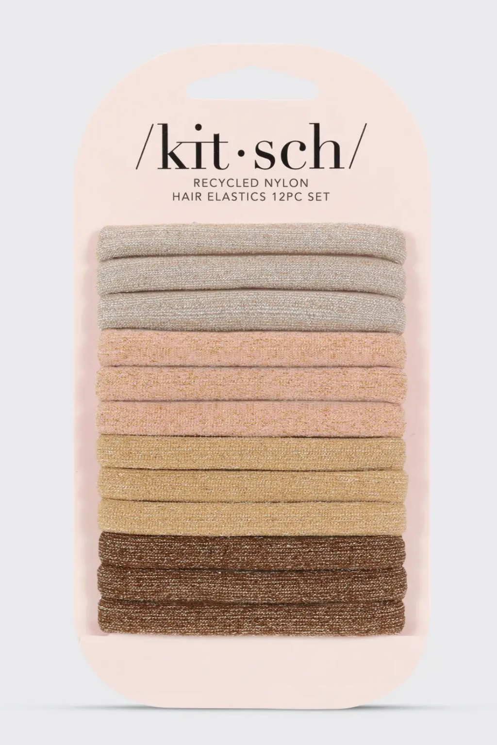 "Put on the glitz wand and jazz up your everyday ponytails, braids, and buns with Kitsch Eco-Friendly Glitter Nylon Elastics. These soft and stretchy hair ties are everyday must-haves, crafted to give you a tight, all-day hold while effortlessly gliding through your hair without tugging, snagging, or creasing. Plus, they’re made from 60% recycled nylon, meaning they’re kind to your hair and the environment! Choose from two sets of subtly shimmery neutrals to add a little something special to your favorite outfits.