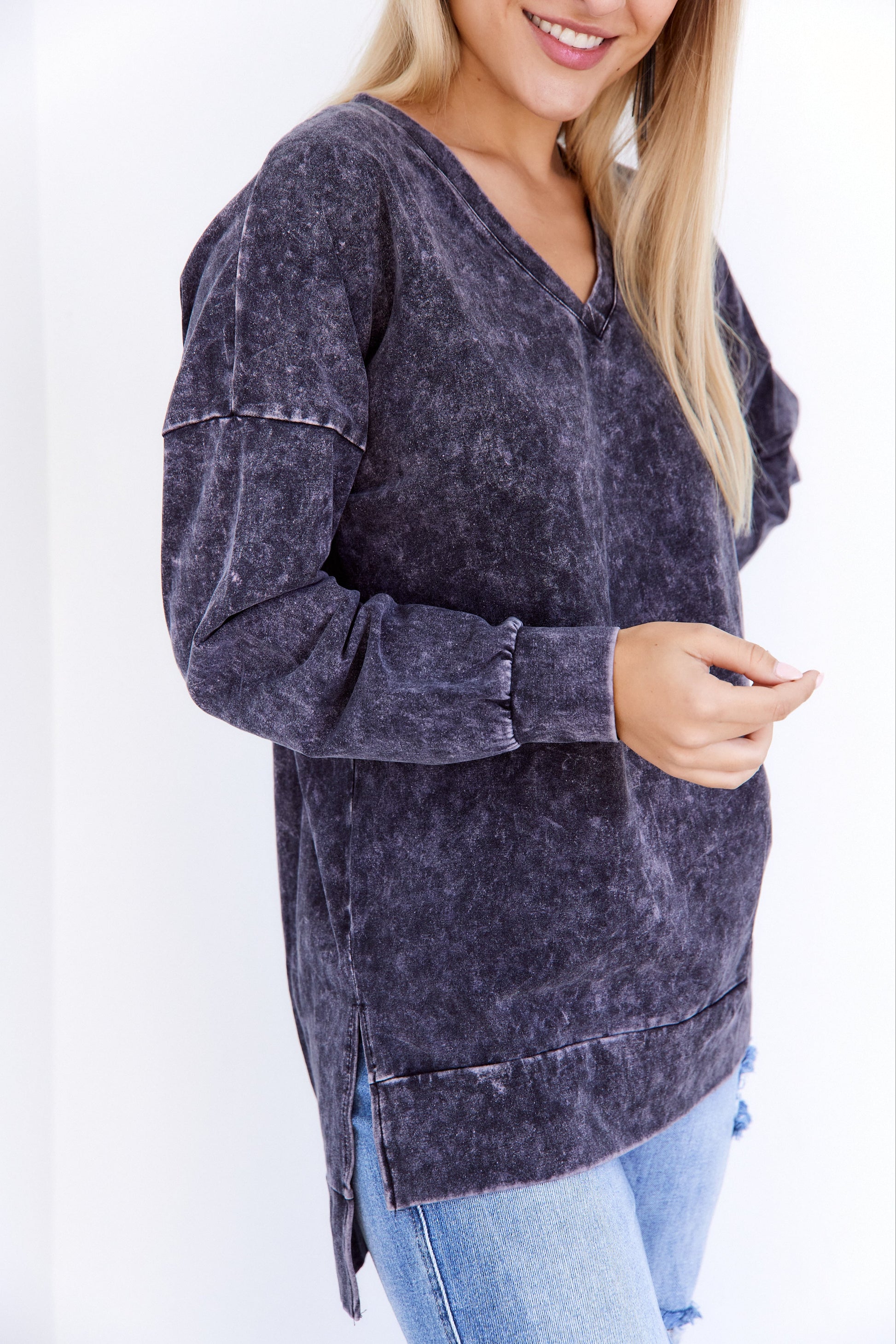 SALE - Rhea Mineral Wash V-Neck Sweatshirt