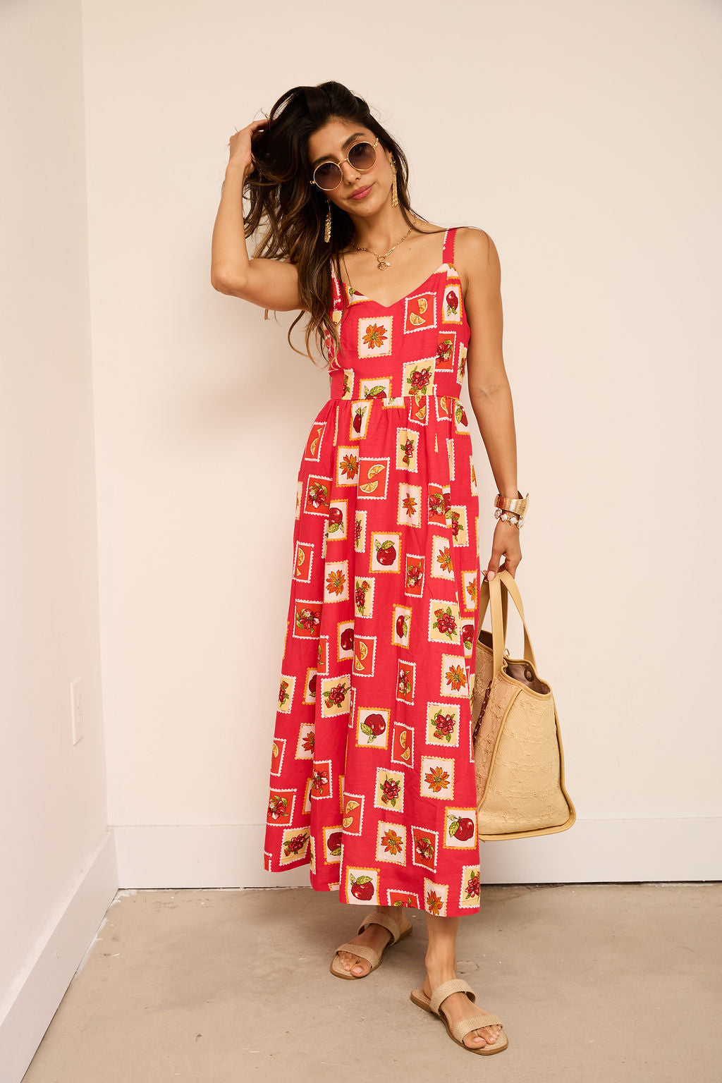 Rita Stamp Pattern Midi Dress